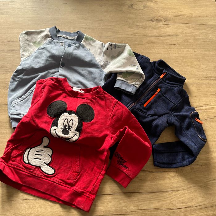 Vend 2 gilets et 1 pull. Gilet bleu clair marqué petit béguin, gilet bleu marine sans marque particulière et pull rouge Mickey marque orchestra. Taille 6 ans.