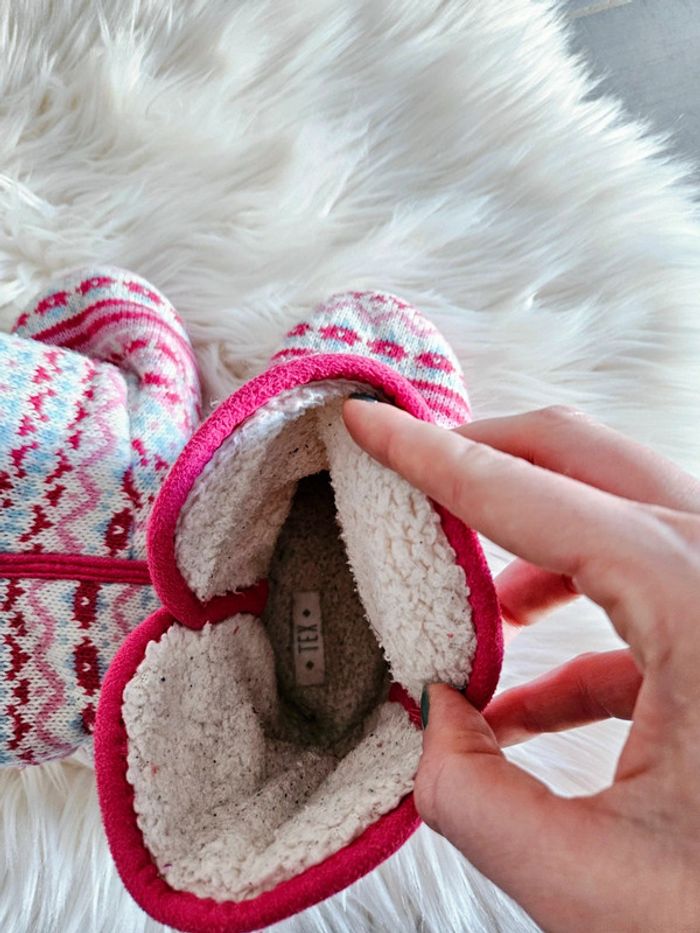 🌈 Chaussons montants et fourrés Tex, pointure 30. Semelles dessous impeccables, ni trou, ni tâche, juste des petits moumoutes sur la partie fourrée intérieure, voir 4e photo, c'est discret 😉. Bien confortables et propres 👌! 🪴 Pensez à lire ma bio pour plus d'infos! Mon dressing est grand: vêtements de grossesse, puériculture, jeux et jouets etc, et surtout beaucoup de vêtements et chaussures pour fille et garçon. 🍀 Pour voir mes autres annonces de vêtements pour fille: #ephemereshadefille ✨️Pour voir uniquement mes autres annonces de chaussures pour fille: #ephemereshadechaussuresfille #tex #pantoufles #chaussons #hiver #chauds #fourrés #moumoute