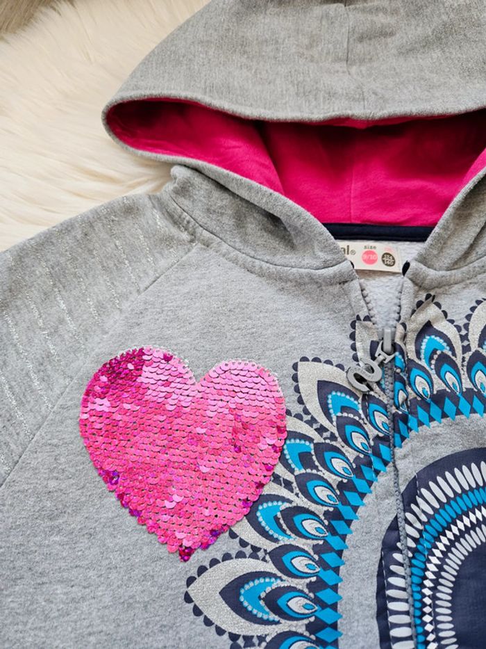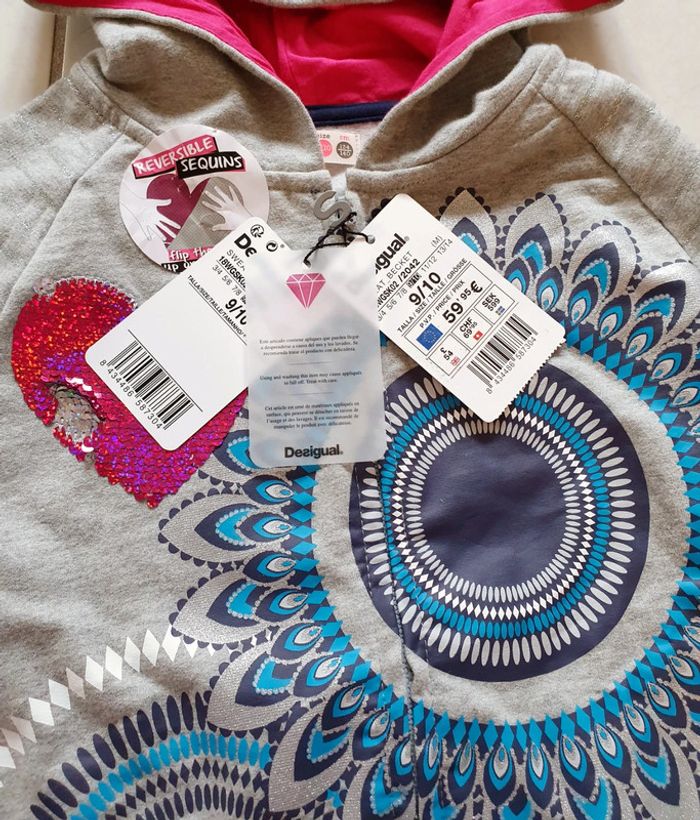🌈 Gilet zippé à capuche Desigual, taille 9/10 ans: il taille 10 ans 😉! Beaucoup de jolis détails: sequins argenté sur les côtés, sequins réversibles cœur 🩷 sur la poitrine, rayures brillantes sur les manches etc. Porté quelques fois mais en très bon état: couleurs toujours bien vives 👍, zéro tâche trou ou autre défaut. Dernière photo à l'achat! 🪴 Pensez à lire ma bio pour plus d'infos! Mon dressing est grand: vêtements de grossesse, puériculture, jeux et jouets etc, et surtout beaucoup de vêtements et chaussures pour fille et garçon. 🍀 Pour voir mes autres annonces de vêtements pour fille: #ephemereshadefille ✨️ Pour voir uniquement la taille 10 ans: #ephemereshadefille10ans #Desigual #veste #coton #giletacapuche #capuche #giletzippé #sequins #sequinsreversibles #cœur #girly
