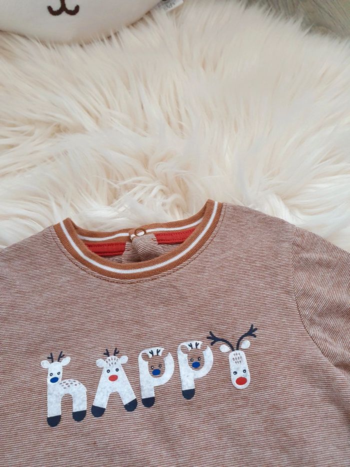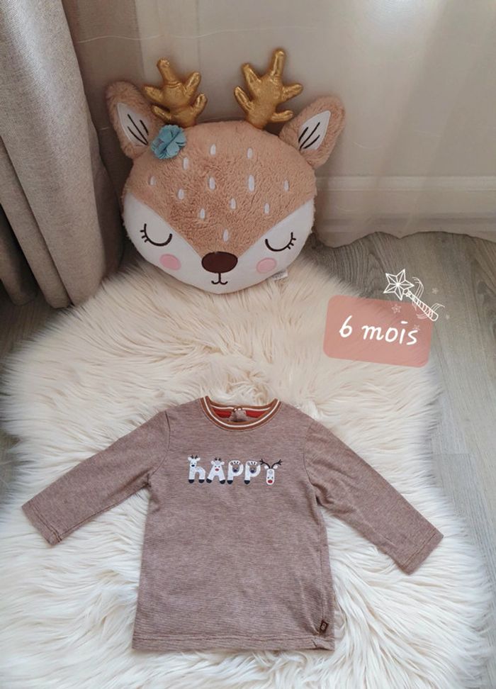 🌈 Tee-shirt manches longues Obaïbi, taille 6 mois. Écriture "happy" en suédine en relief, thème hiver et renne 🦌! État comme neuf, porté une seule fois, aucun défaut. Dernière photo à l'achat: coton bio 💗. 💐 Mon dressing est grand alors n'hésitez-pas à lire ma description de profil pour y découvrir tout ce que j'ai à vous proposer! Vêtements et chaussures pour femme, vêtements de grossesse, puériculture, jeux et jouets etc, et surtout beaucoup de vêtements et chaussures pour fille et garçon! 💐 Pour voir mes autres annonces de vêtements bébé et petit garçon: #ephemereshadeboy 💐 Pour voir uniquement la taille 6 mois: #ephemereshadeboy6mois #obaibi #okaidi #rayures #noel #renne #hiver