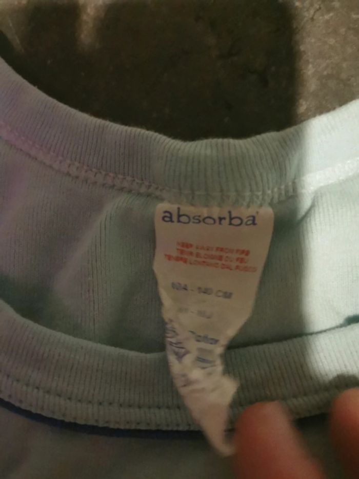 Taille indiquée sur le bleu clair est 10 ans mais correspond plutôt à du 8 ans. Le bleu clair est un absorba et le deuxième est sans marque.