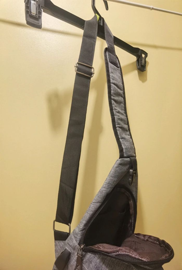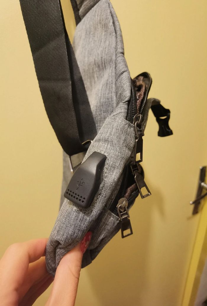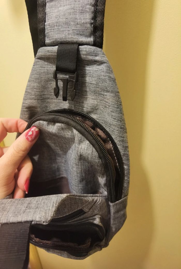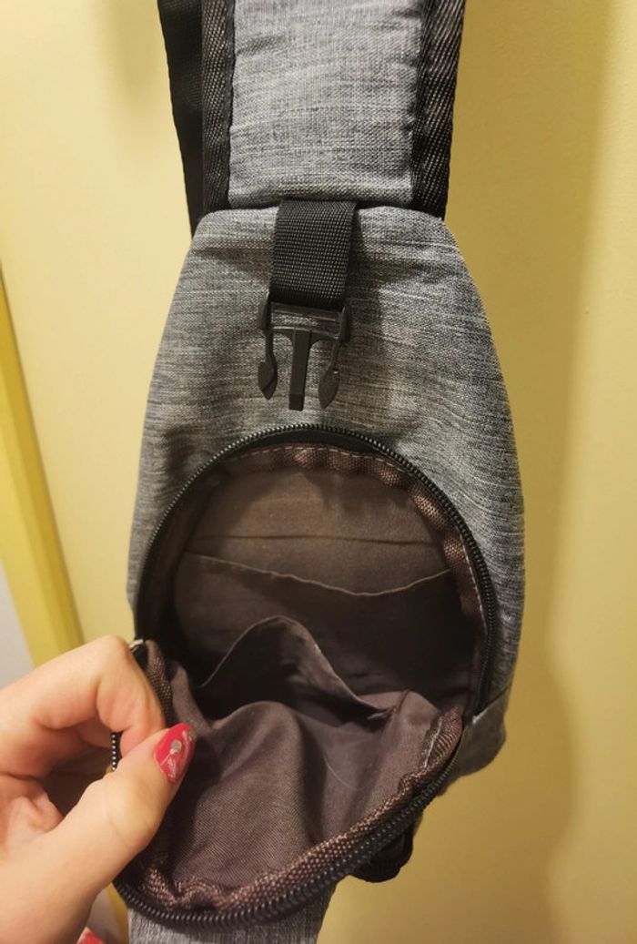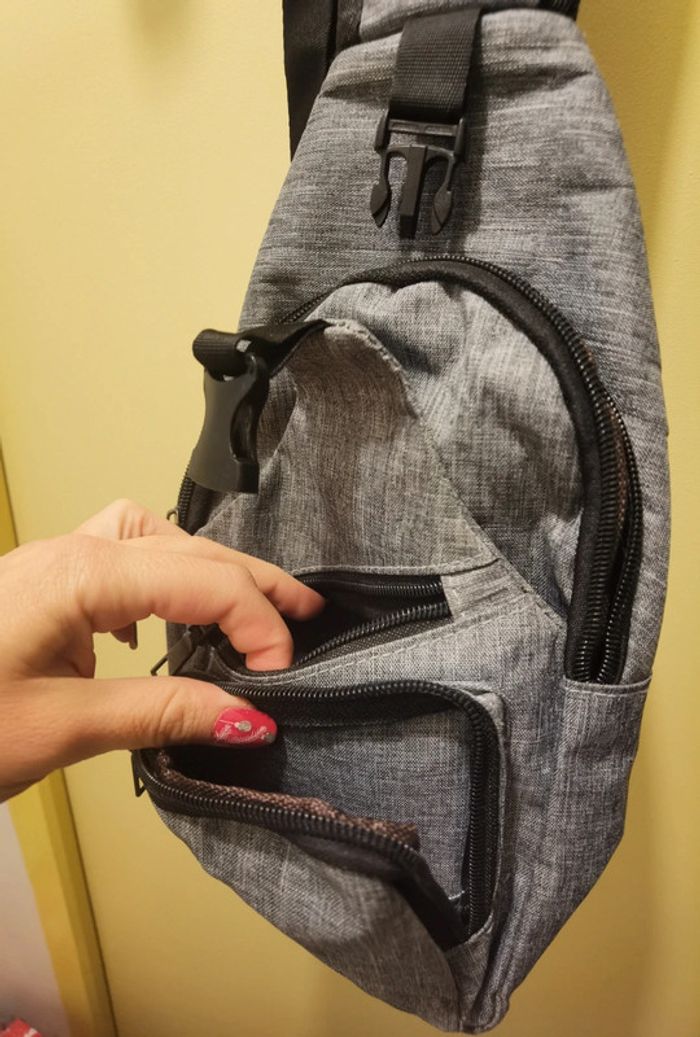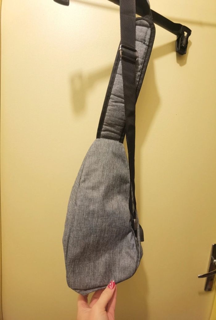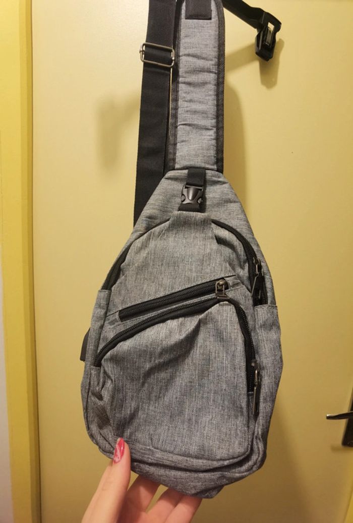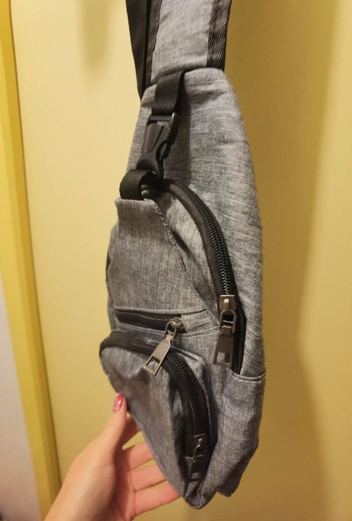 Peu utilisé 5 poches (4 avec fermeture éclair) Cache sur le côté pour passé un câble de recharge Sangle pouvant être réglé Couleur gris clair et noir Homme ou femme #sacbandoulière #sachommefemme #sac
