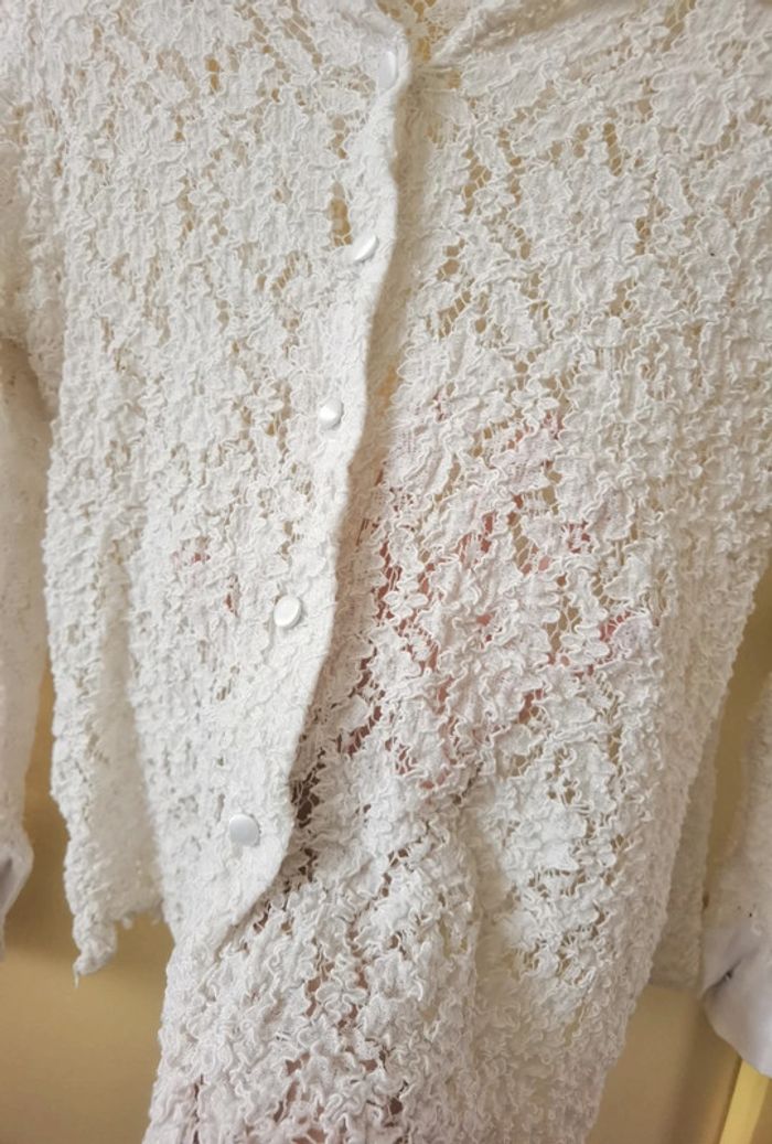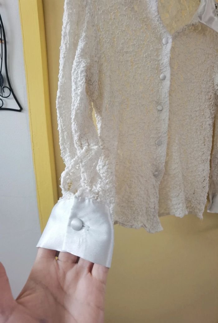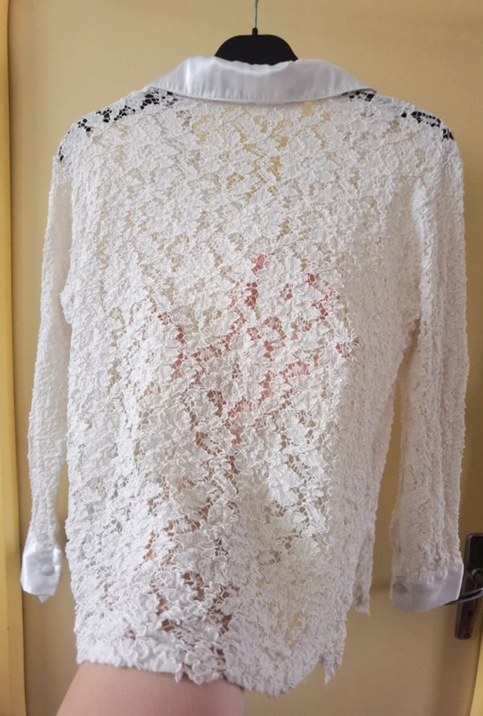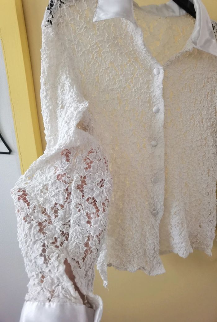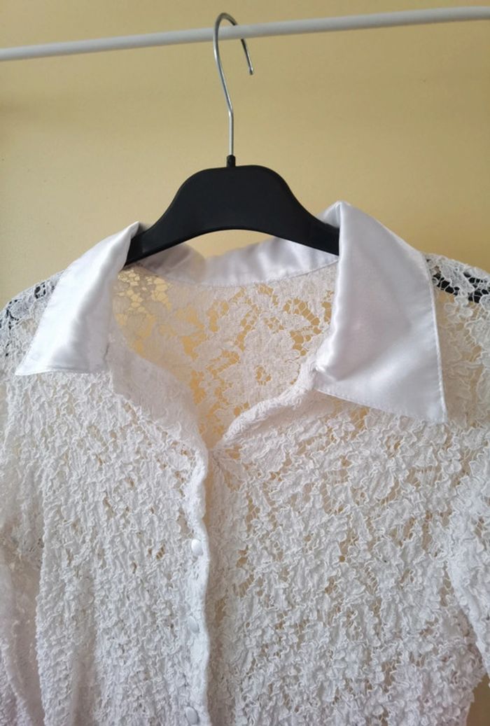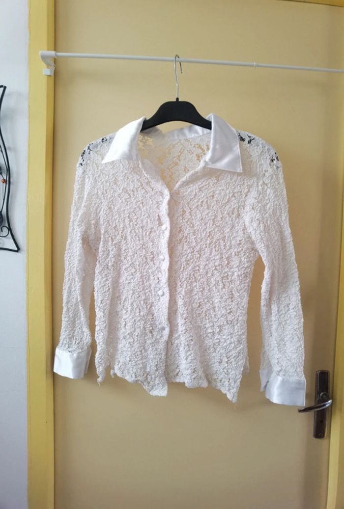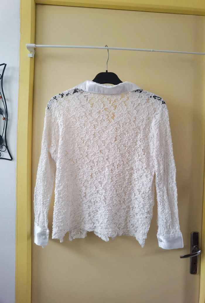 Peu portée Taille 38 Chemise blanche effet dentelle Boutons, col et manche effet satiné Pas de défaut constaté #carolinevêtementsM #carolinehaut #chemise