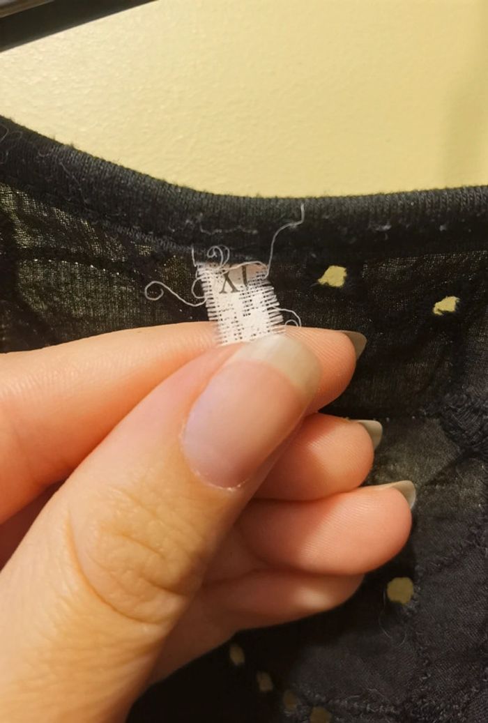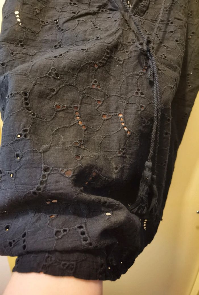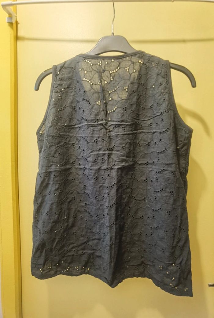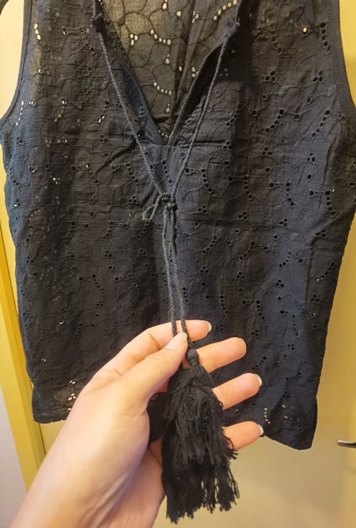 Souvent porté Taille XL (étiquette peu visible à cause des lavages) #carolinevêtementsXL #carolinehaut Matière très très peu élastique Couleur noir. Légère transparence avec les "trous" File et pompom au Décolleté Pas de défaut constaté