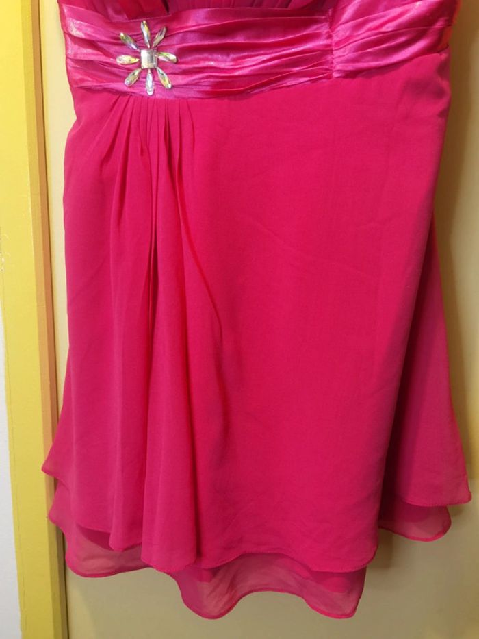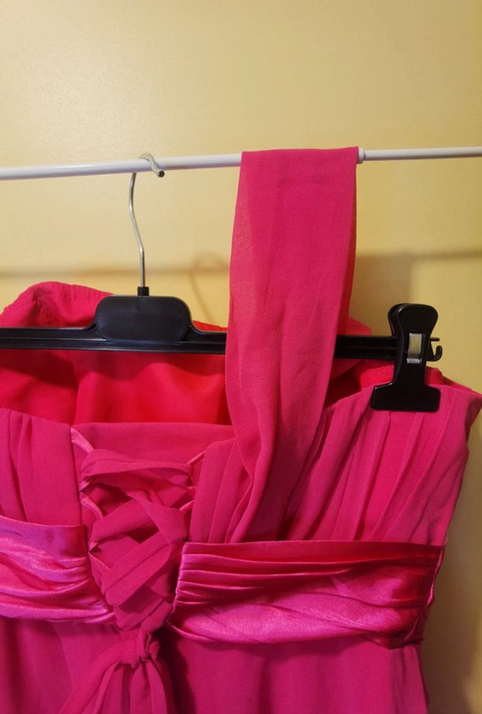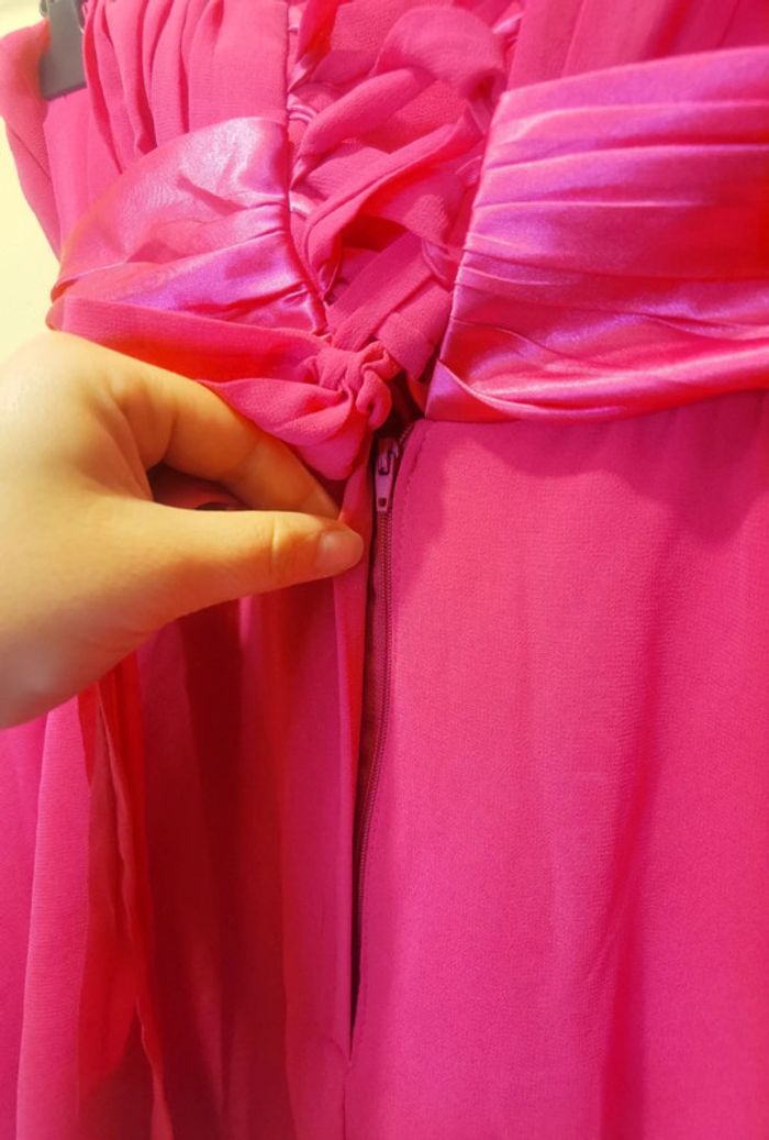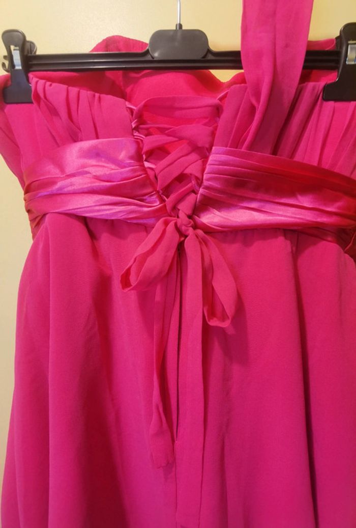 Porté 1x Taille 46.XXXL #carolinevêtements3XL Couleur fushia Une bretelle en tissus Strass décoratif à la taille À fermer dans le dos avec lien et fermeture Pas de défaut constaté