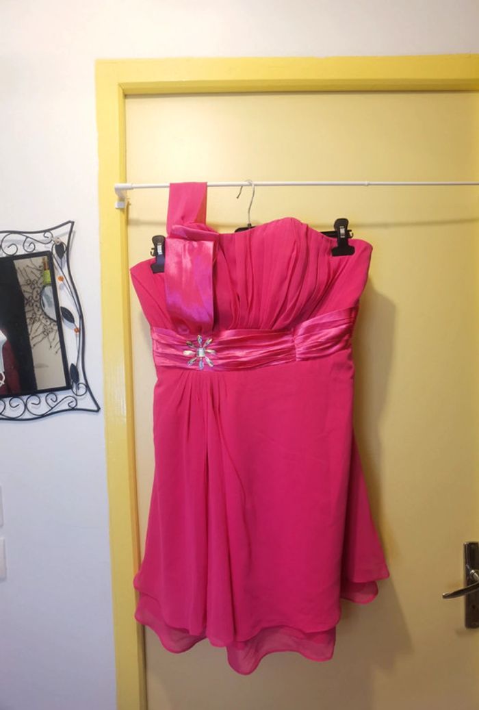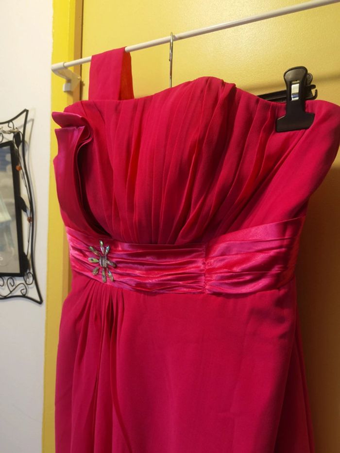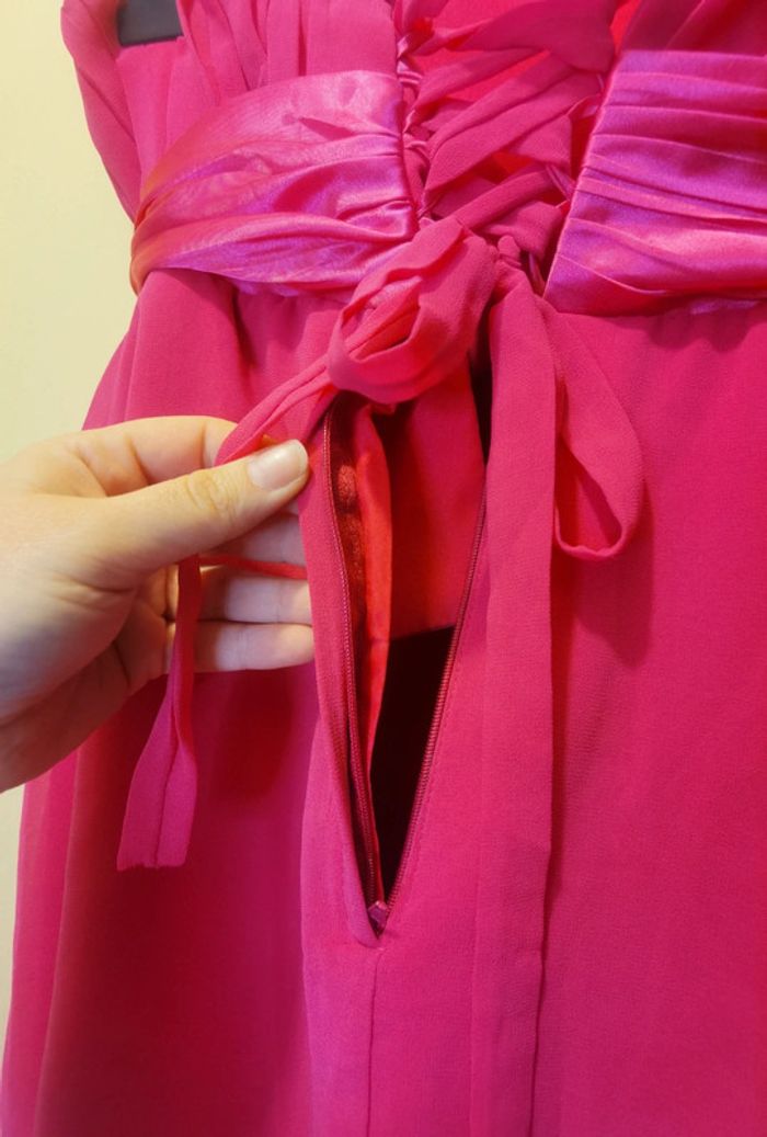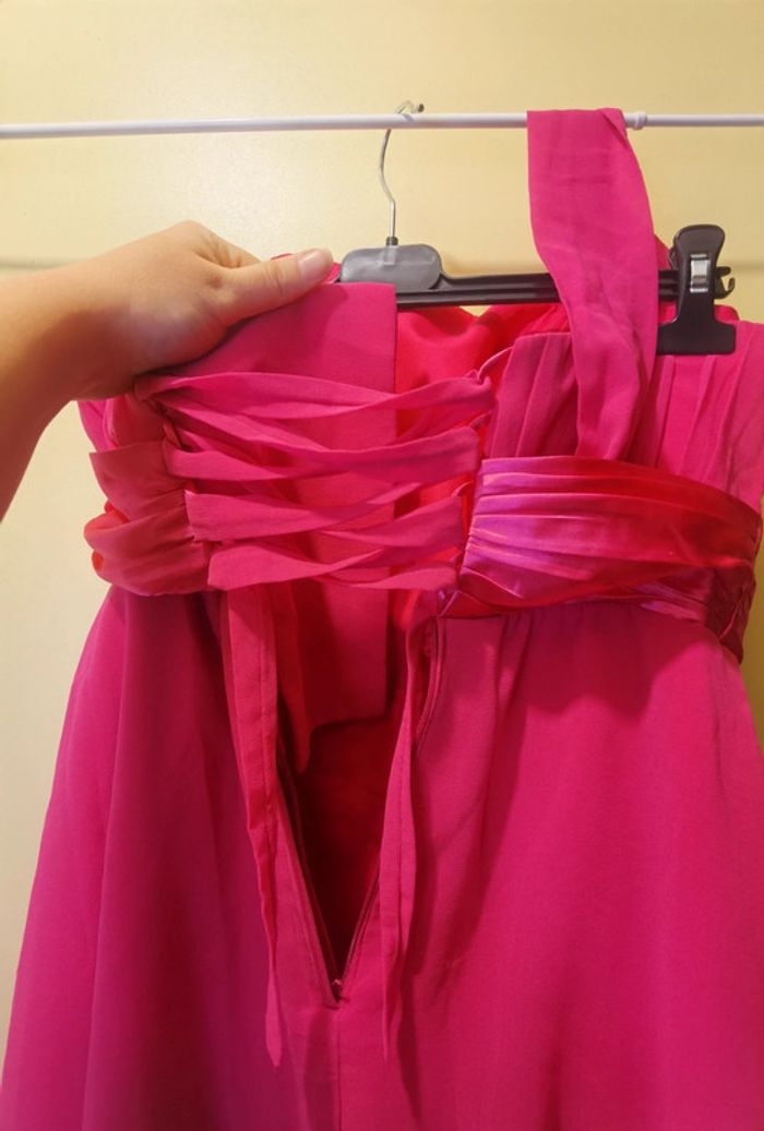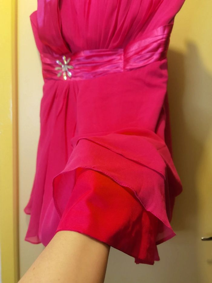 Porté 1x Taille 46.XXXL #carolinevêtements3XL Couleur fushia Une bretelle en tissus Strass décoratif à la taille À fermer dans le dos avec lien et fermeture Pas de défaut constaté