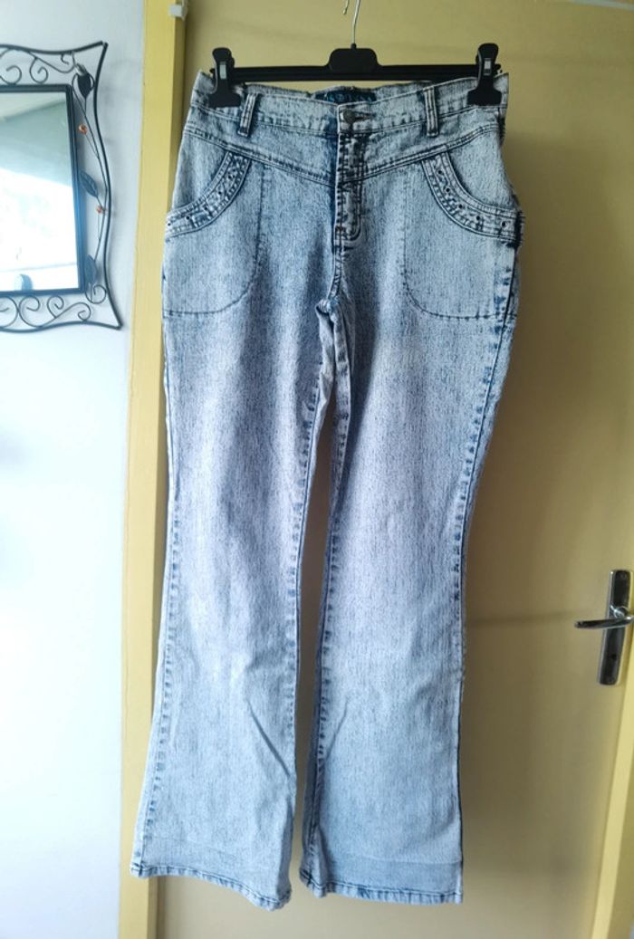 Souvent porté Taille 38.M #carolinevêtementsM #carolinepantalon #carolinejean Jambes évasés Bouton et fermeture éclair 2poches devant et 2 poches derrière Défaut voir 3 dernieres photos -poche arrière mal cousue d'origine - le 2 bas de pantalon avec légère trace (ourlet)