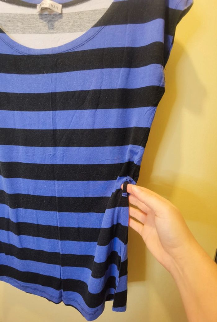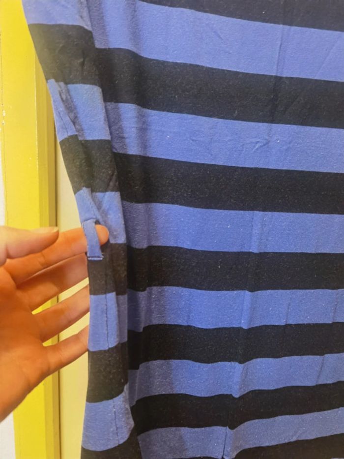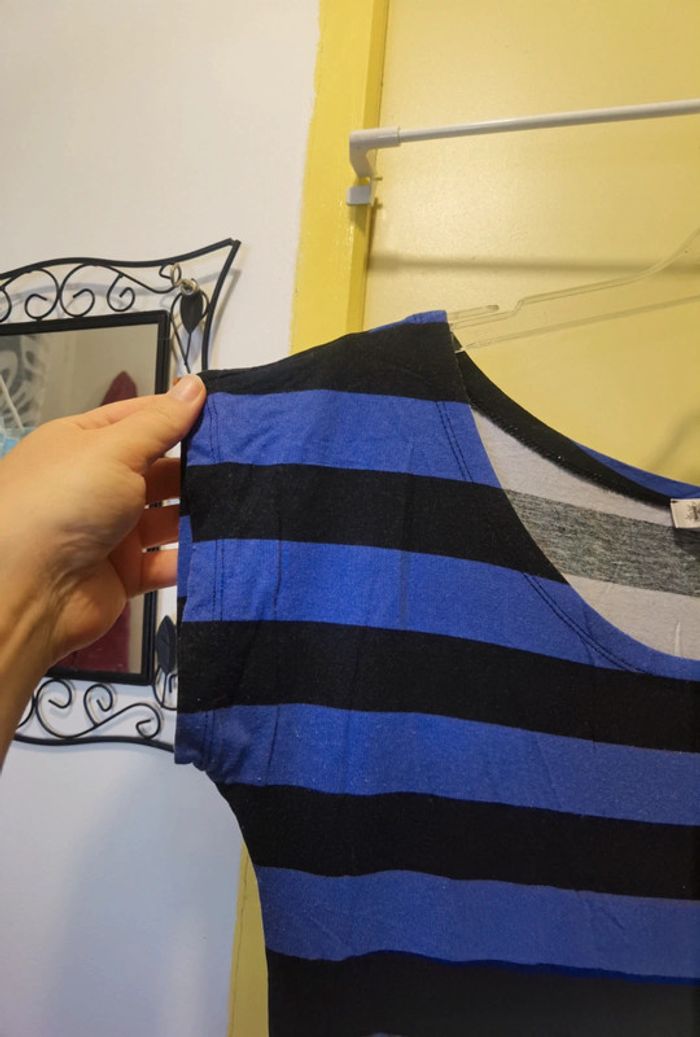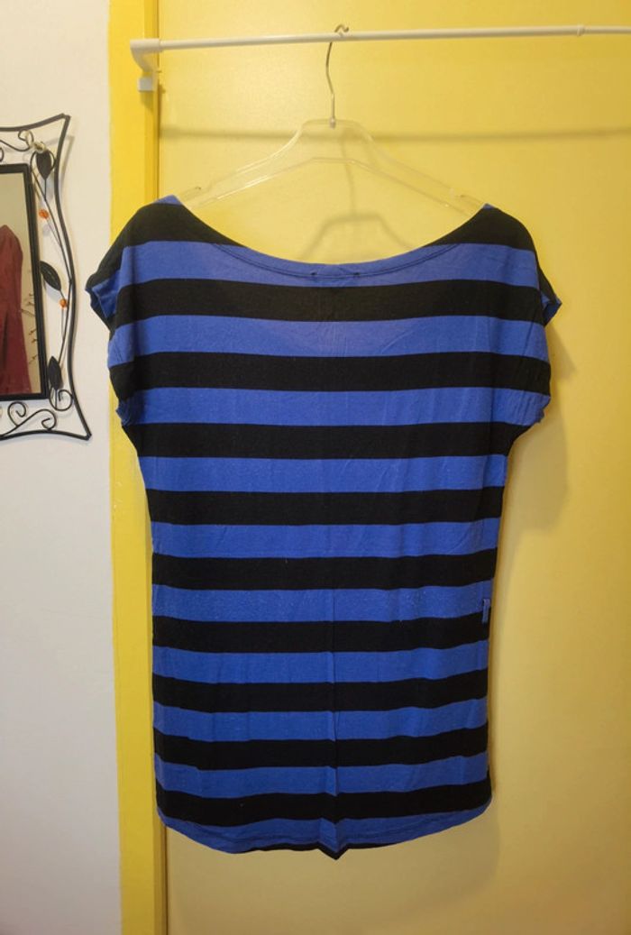 T-shirt long rayé noir & bleu électrique - photo numéro 1
