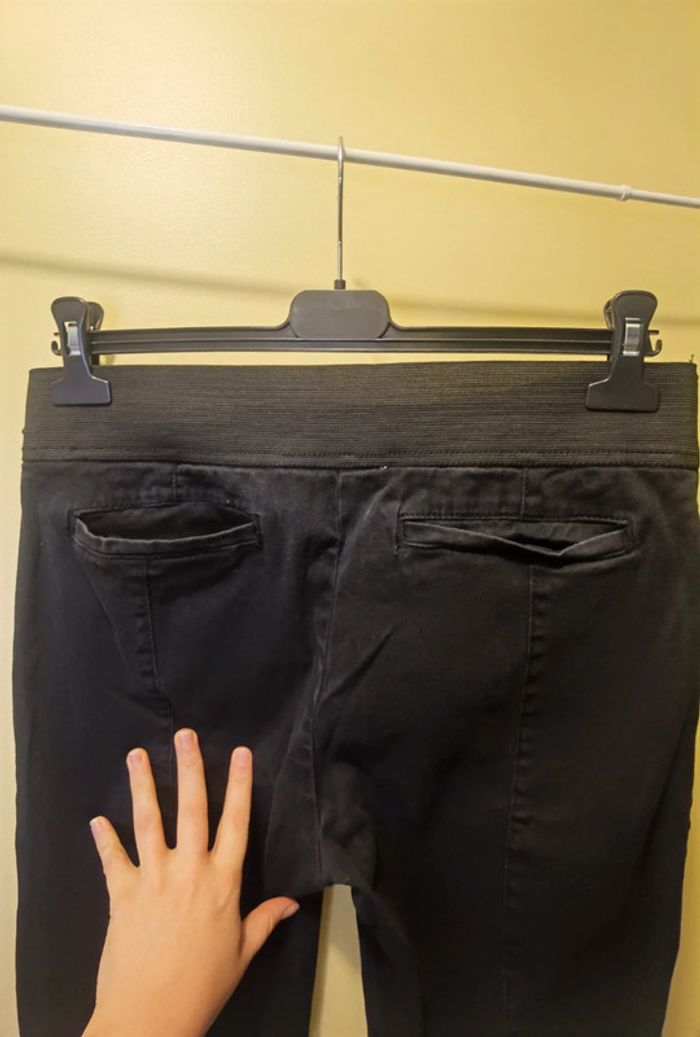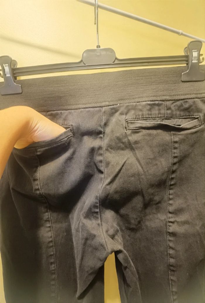 Acheté à une Vintie mais mauvaise taille Taille 42.XL #carolinevêtementsXL #carolinepantalon #carolinejean Pantacourt noir, élastique à la taille Aucune poche devant, 2 à l'arrière Pas de défaut constaté