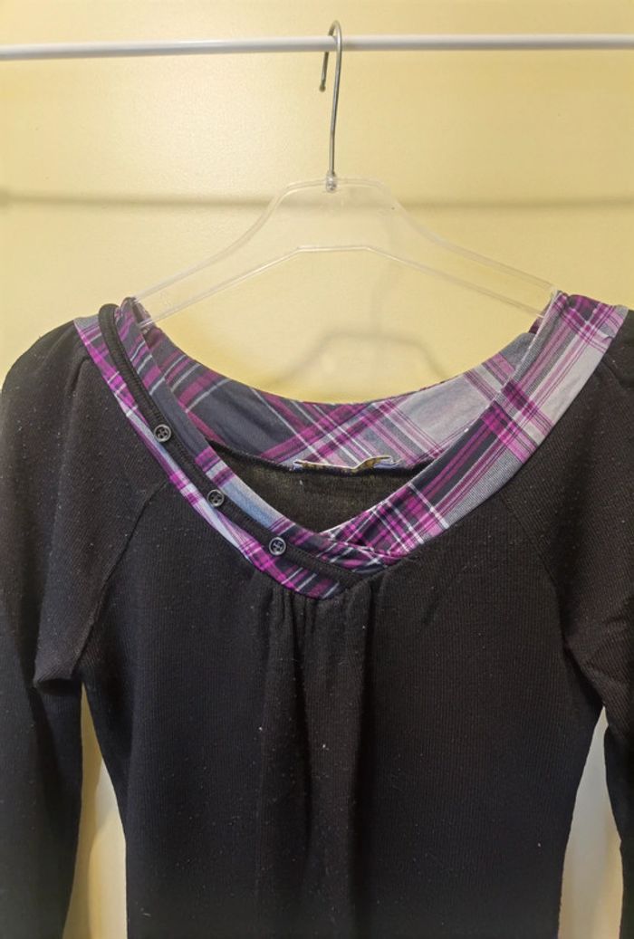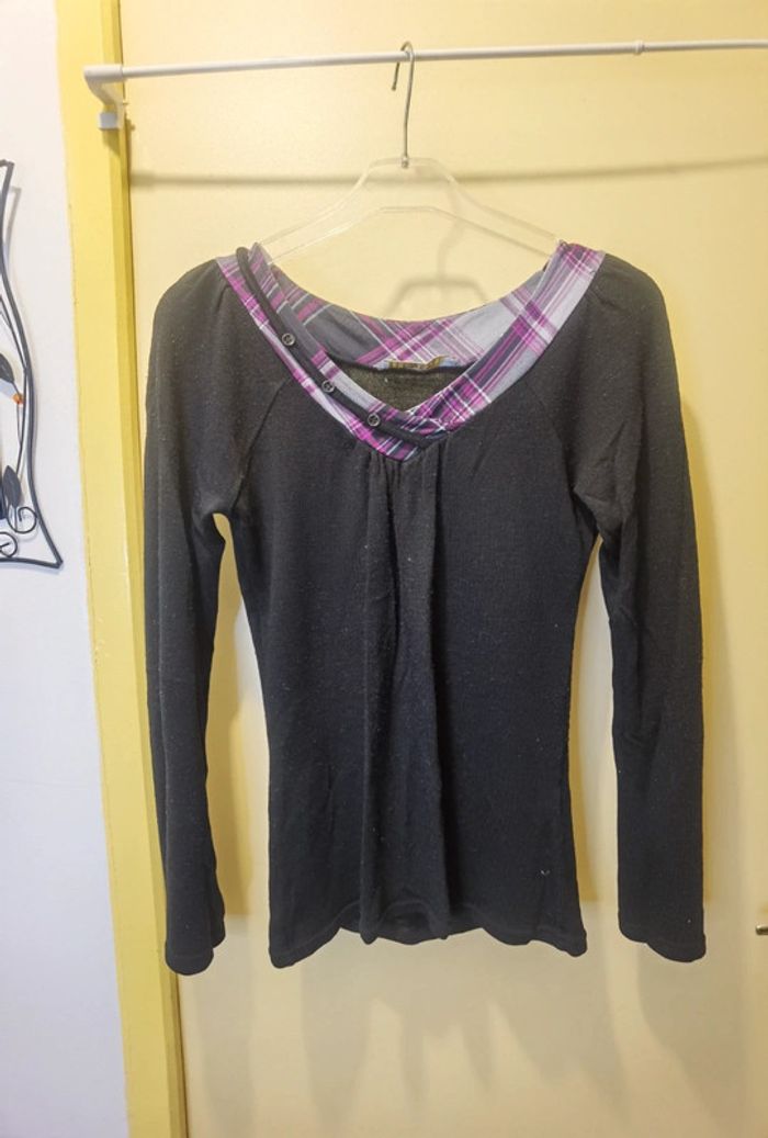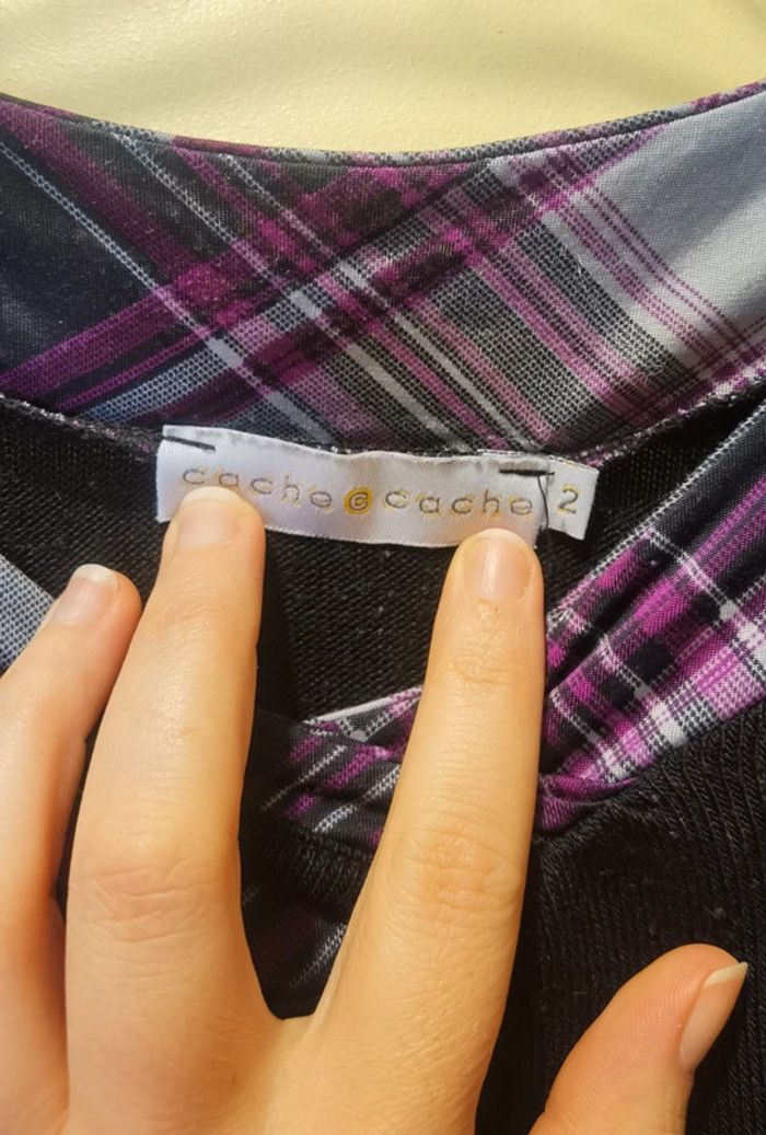 Souvent porté Taille 2/ M #carolinevêtementsM CACHE CACHE Col rayé violet/noir/gris avec bouton de déco Un peu bouloché d'où le prix
