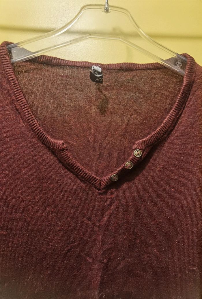 Souvent porté Pull bordeau/marron/violine Petit détail au col mini V Taille L voir M #carolinevêtementsM #carolinevêtementsL Pas de défaut constaté