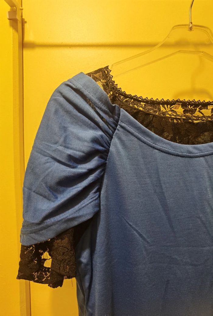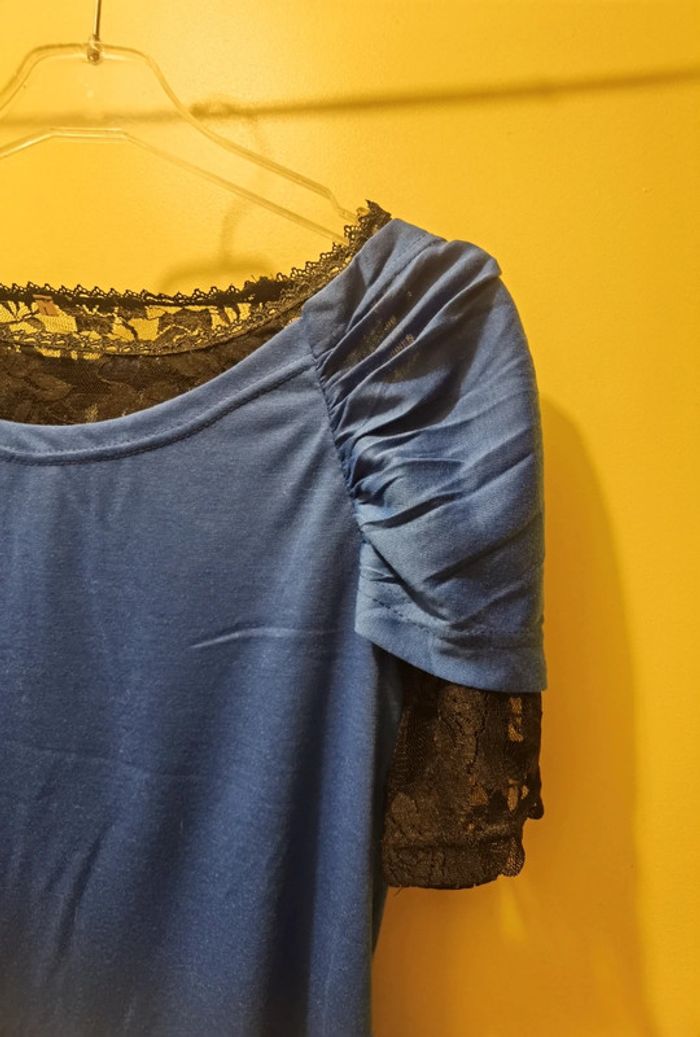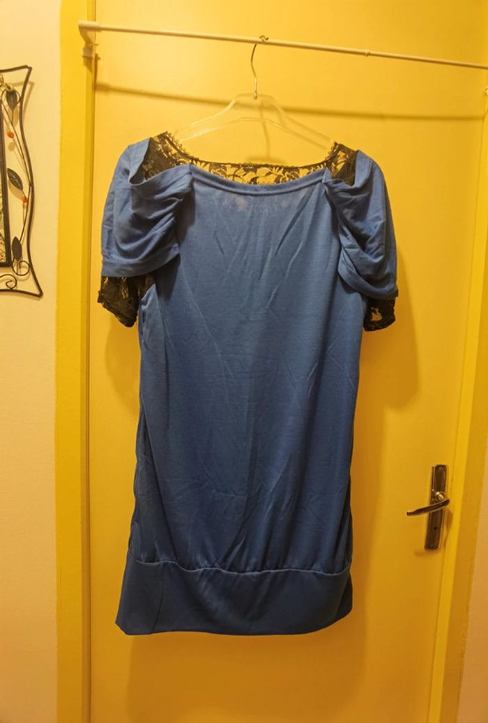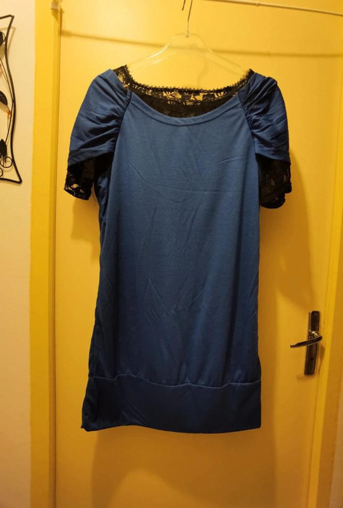 Long t-shirt Blau électrique Dentelle noire - photo numéro 1