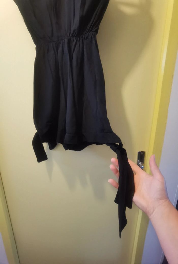 Peu portée Taille L #carolinevêtementsL Élastique seulement à la taille. À nouer dans le cou Lien à nouer aux cuisses Tour de taille environ 48cm sans étirer L'élastique. 92cm en tirant dessus. Longueur totale environ 58cm À partir de la taille environ 34cm Pas de défaut constaté
