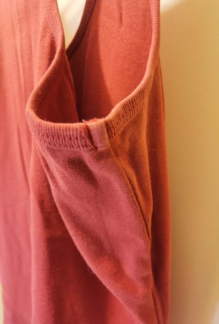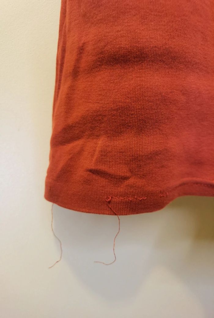 Souvent portés Taille M #carolinevêtementsM MIM Matière élastique Traces sous les aisselles (voir photos) Un peu décousu en bas du orange foncé (voir photo) Longueur totale environ 53cm À partir des aisselles environ 38cm D'aisselle à aisselle environ 35cm
