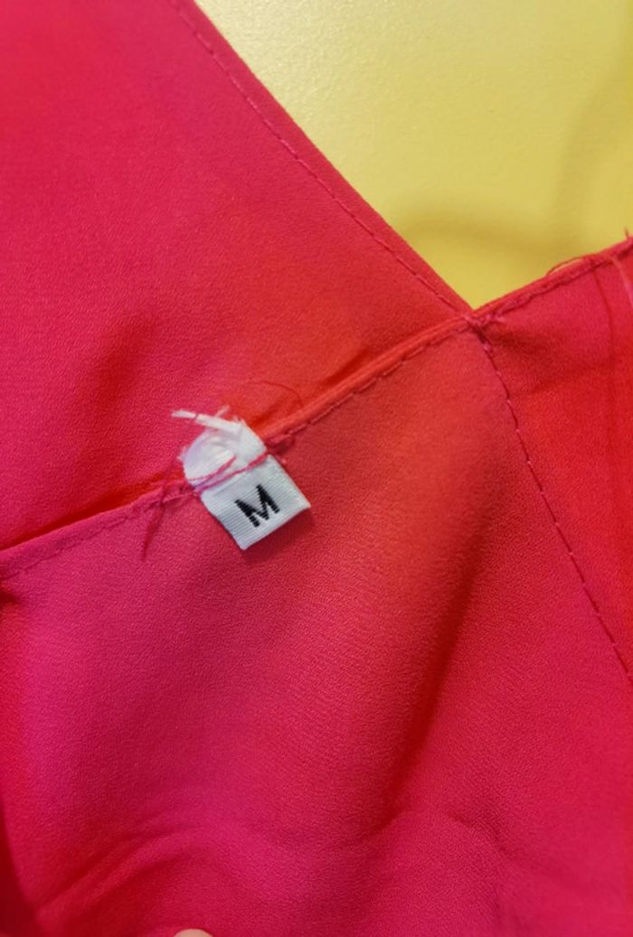 Porté 1 foi Matière très légèrement élastique Taille M #carolinevêtementsM Légèrement transparent, doublé à la poitrine Dos ouvert Longueur totale environ 55cm D'aisselle à aisselle environ 43cm Pas de défaut constaté