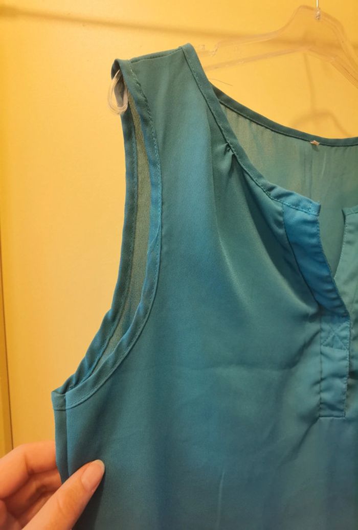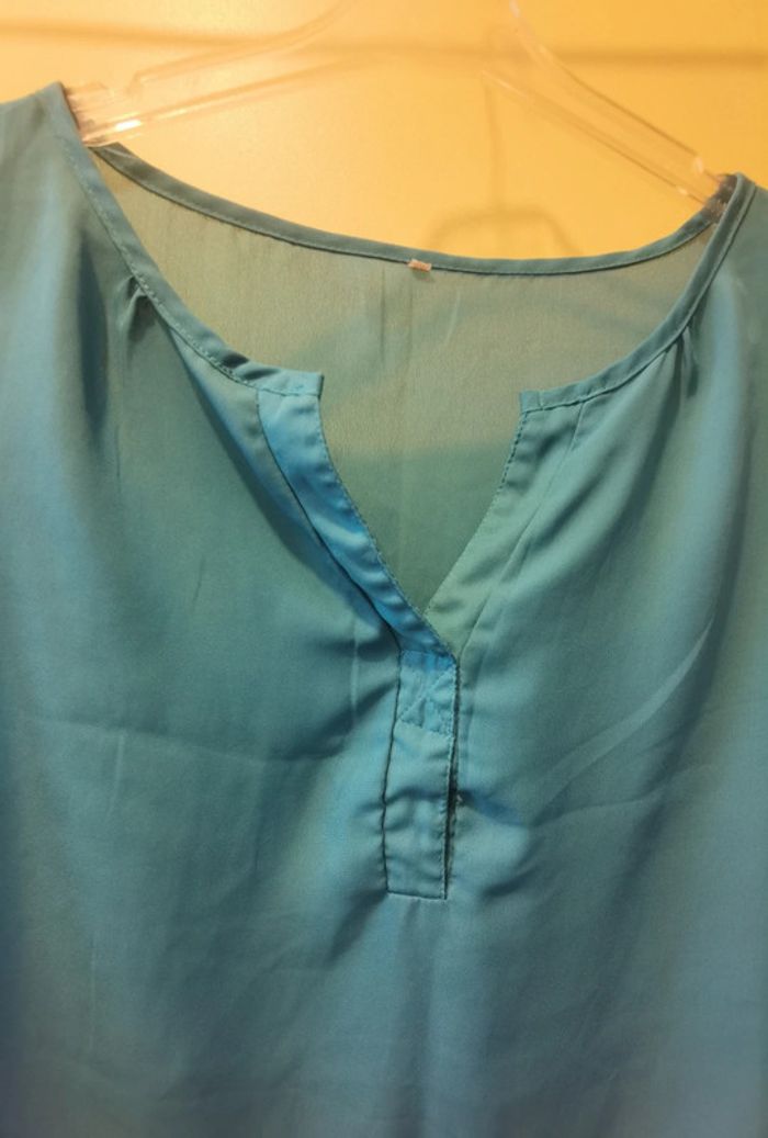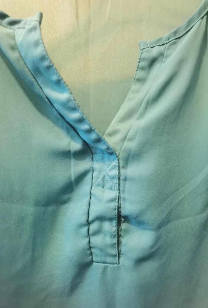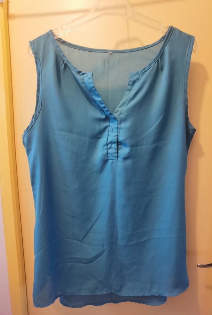 Souvent porté Taille L #carolinevêtementsL Matière non élastique, fluide Légère transparence Petite ouverture en V au niveau du col et ouverture en 4ieme photo sous le "V" d'origine Pas de défaut constaté