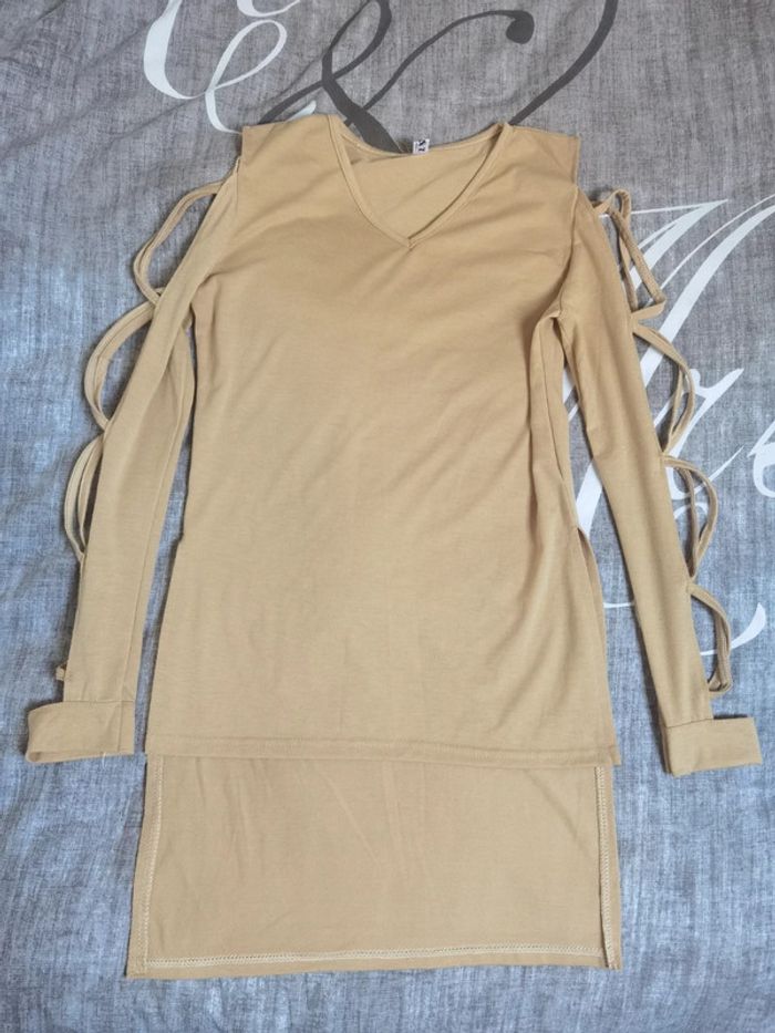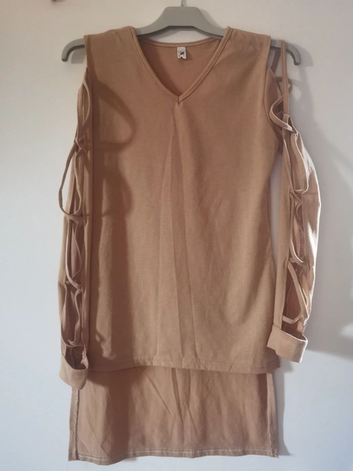 Puls avec manche ajouré avec des lien qui s'entrecroisent #carolinevêtementsL Assymétrique (Le dos est plus long que le devant) Couleur crème Taille 40 Pas de défaut constaté