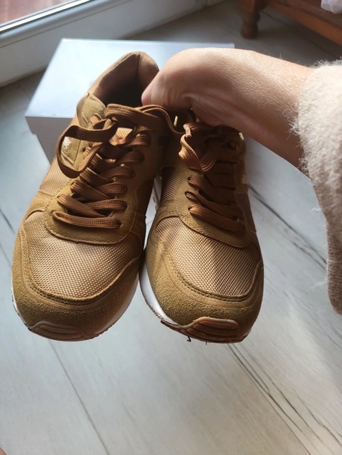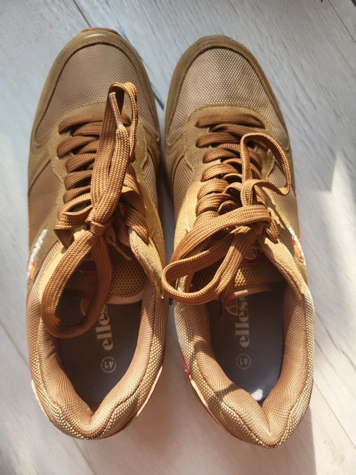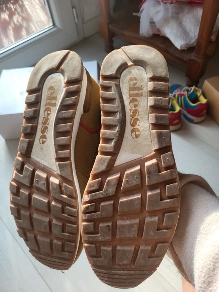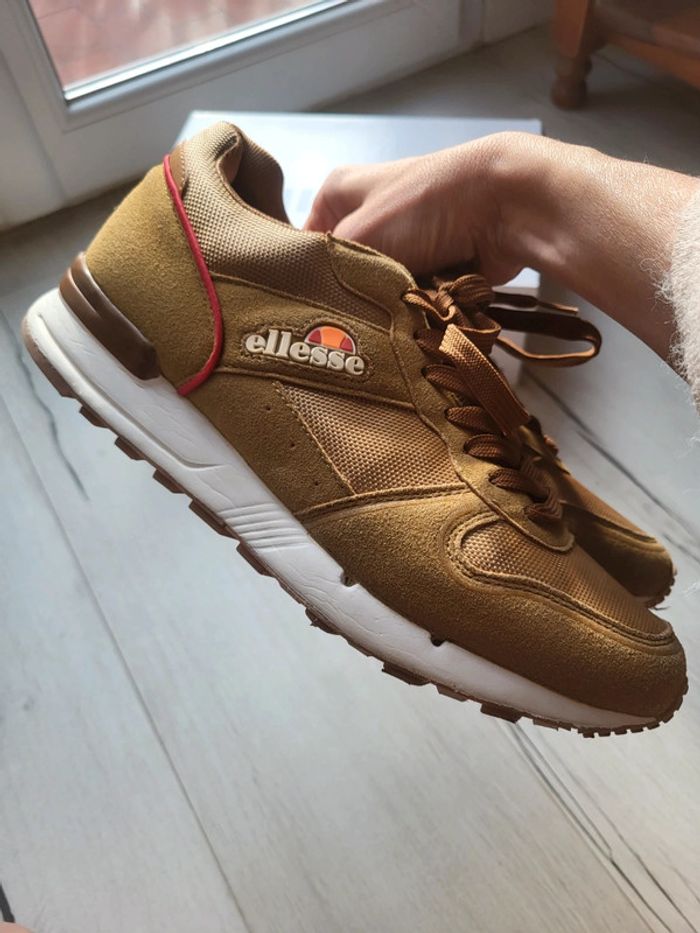 Baskets ellesse garçon pointure 41. Essayées 1 fois mais achetées trop justes. Jamais remises. Coloris marron moutarde. #chaussurestristan #ellesse #baskets #moutarde #neuves #basketsellesse