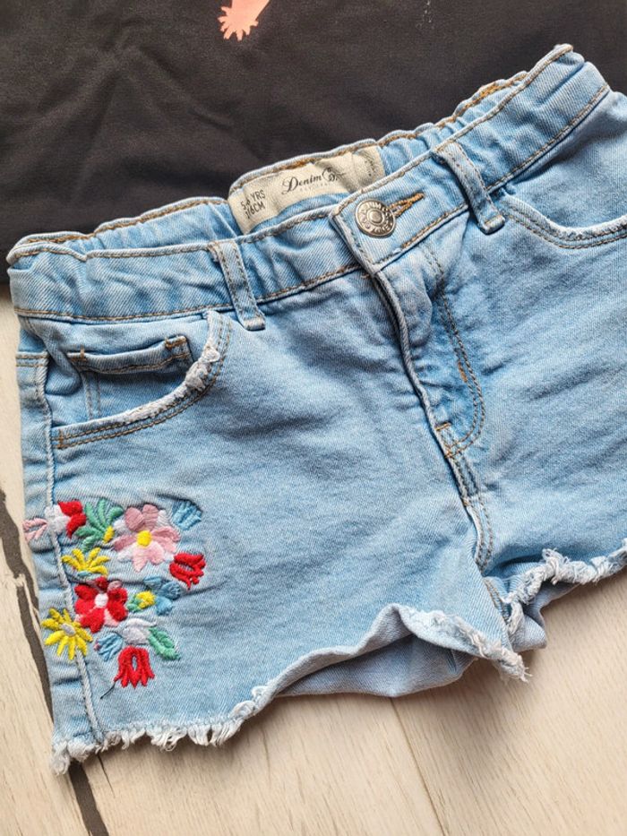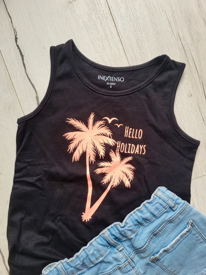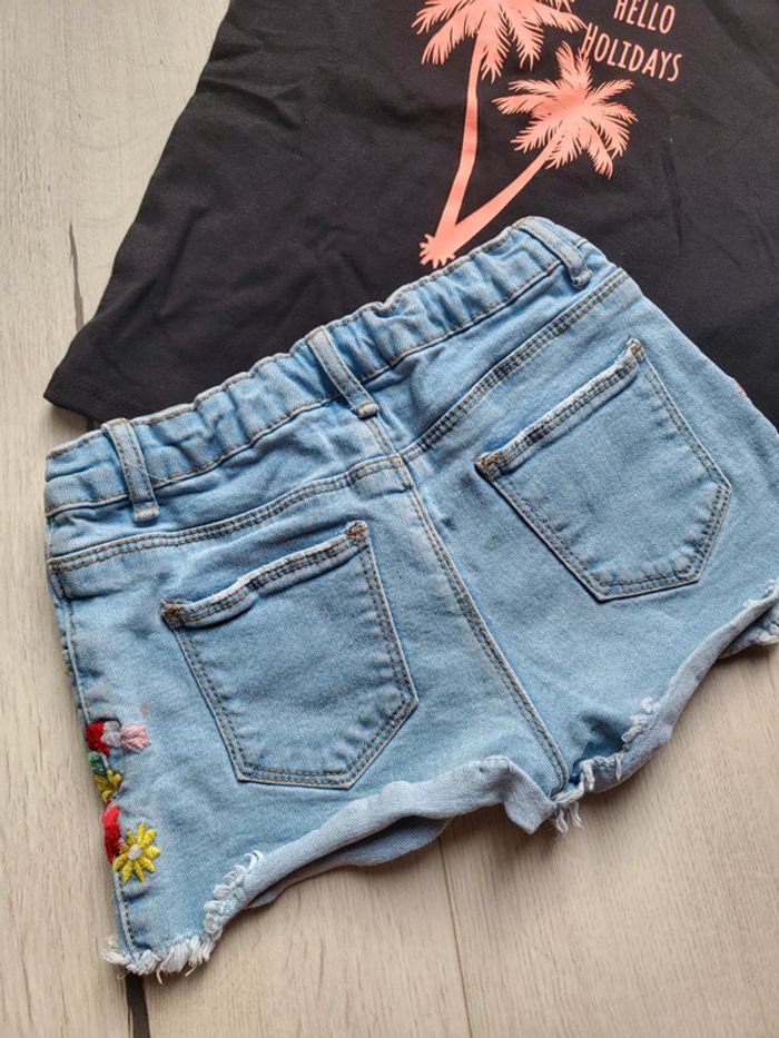 Très bon état. Joli petit ensemble 6ans fille. Short broderies h&m. Tee-shirt noir palmiers inextenso. #6anstatiana #short #hm #inextenso #palmiers #6ans