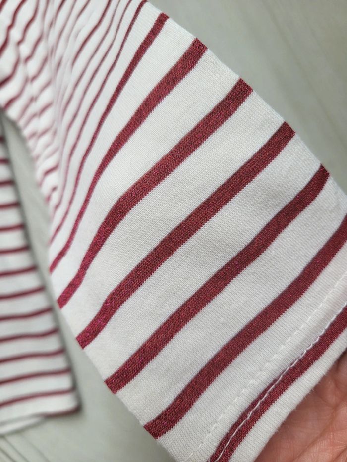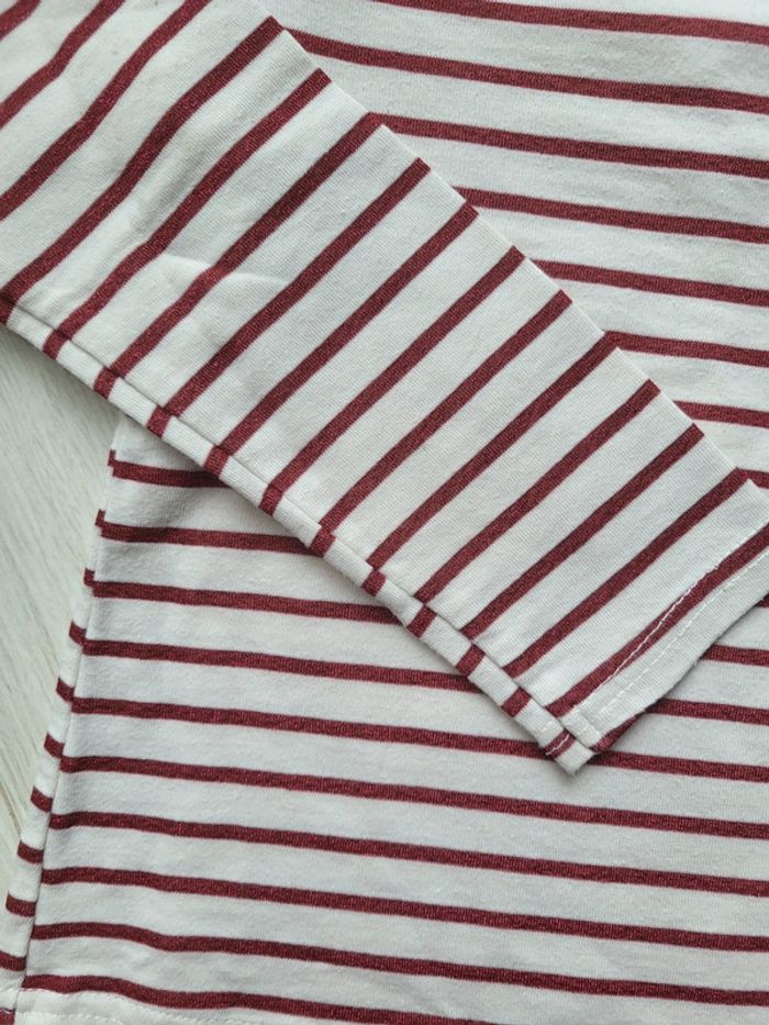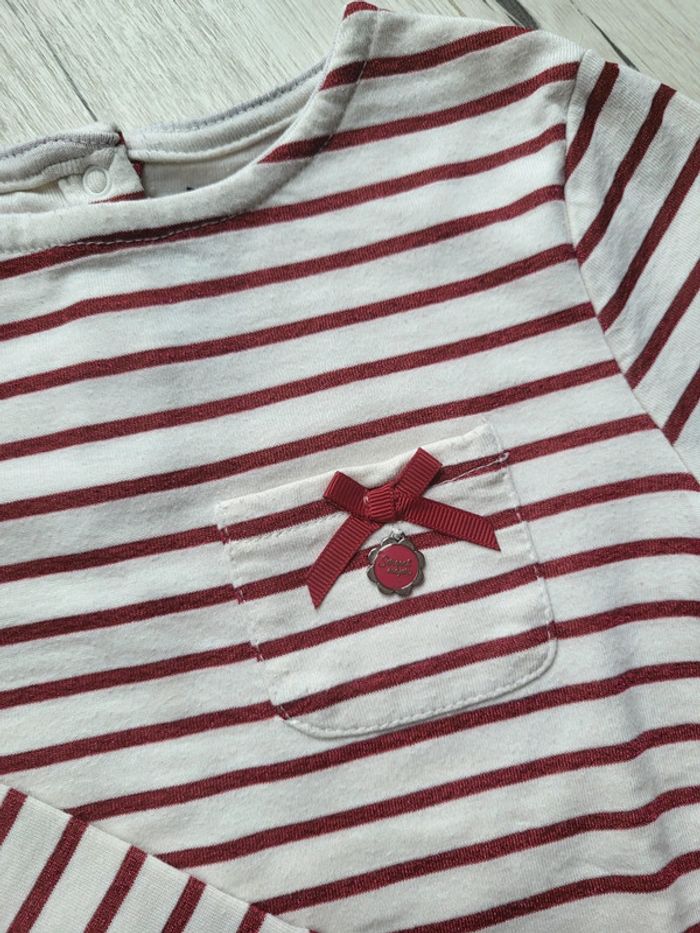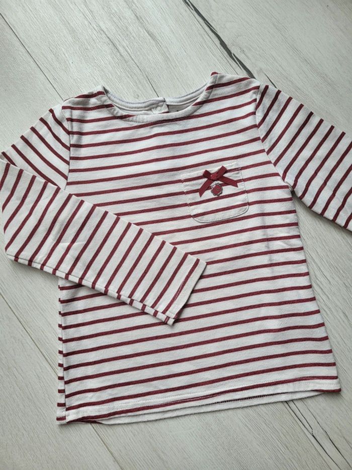 Excellent état. Tee shirt marinière à rayures blanches et rouge pailletées. Taille 7ans sergent major. Petit noeud. #7anstatiana #8anstess #6anstatiana #pull #sergentmajor #marinière #7ans #sm
