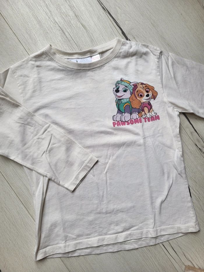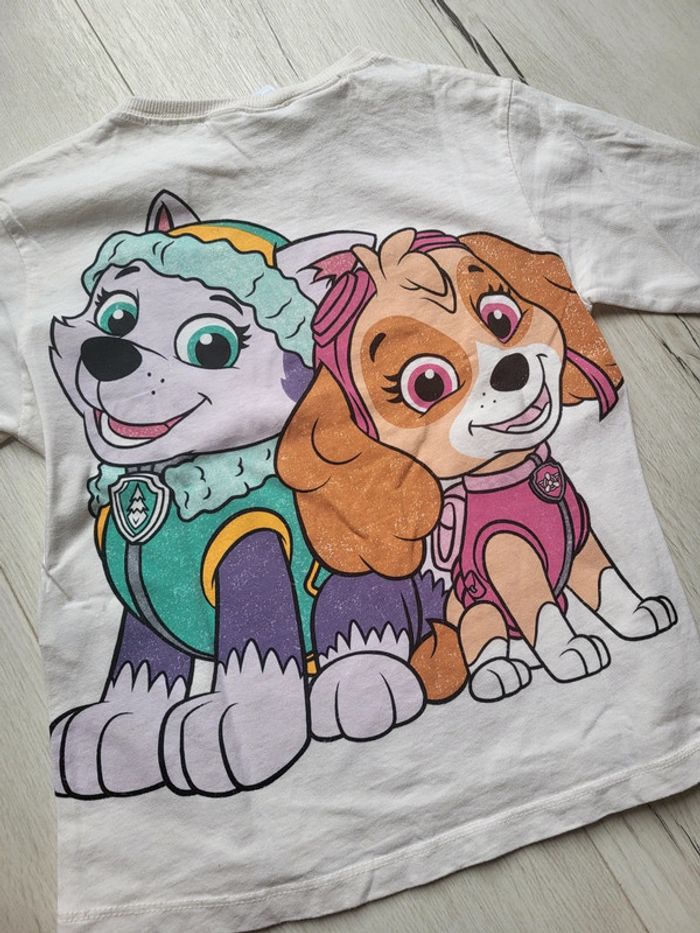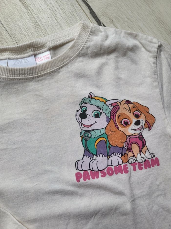 Tee-shirt blanc cassé et motifs pat patrouille. Lavé mais non porté, acheté trop juste. Taille 5ans. Zara. Paw patrol nickelodeon. #5anstatiana #zara #patpatrouille #pawpatrol #nickelodeon #5ans #stella