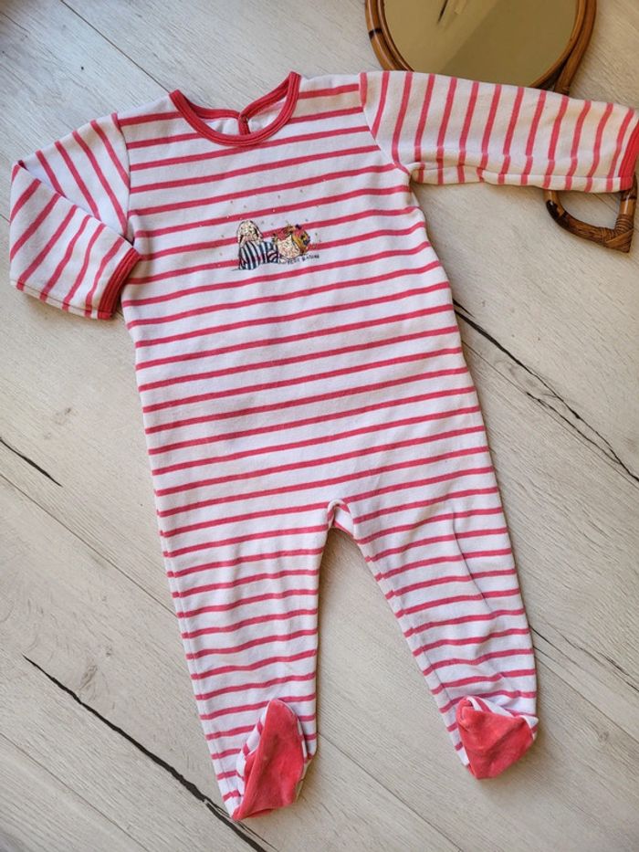 Pyjama petit bateau rayures rouges. Le tissu est neuf, non porté, mais le petit dessin a craquelé au premier lavage. Taille 2ans. #2anstatiana #Pyjama #petitbateau #neuf #rayures