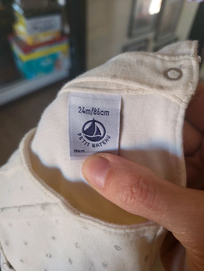 Jolie robe toute douce. A pois argentés. Coloris crème. Petit bateau 24 mois. Pressions au dos. #2anstatiana #24mois #2ans #pois #robe #robeàpois #petitbateau