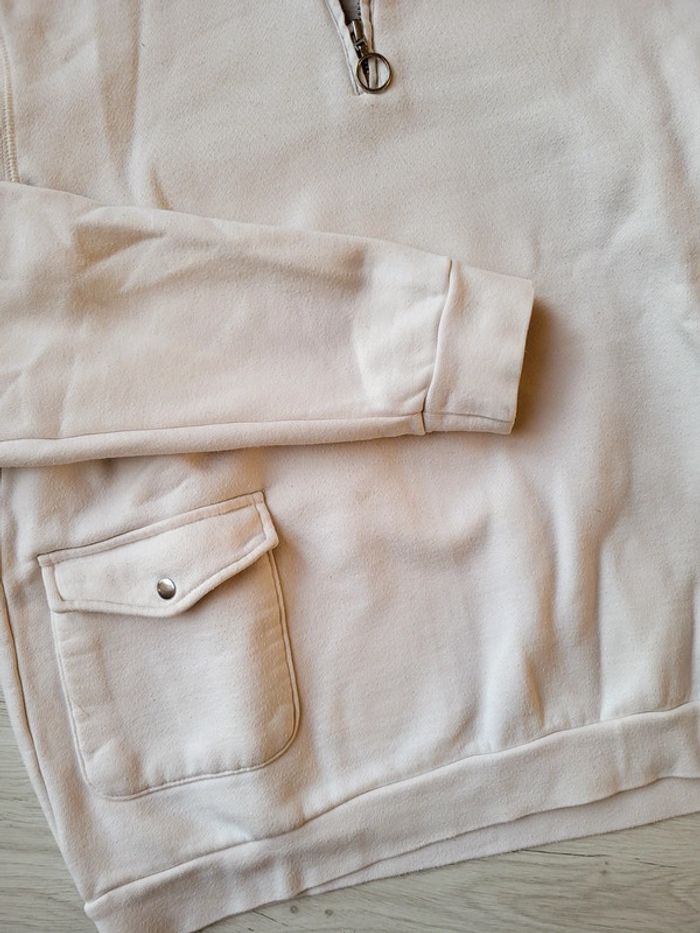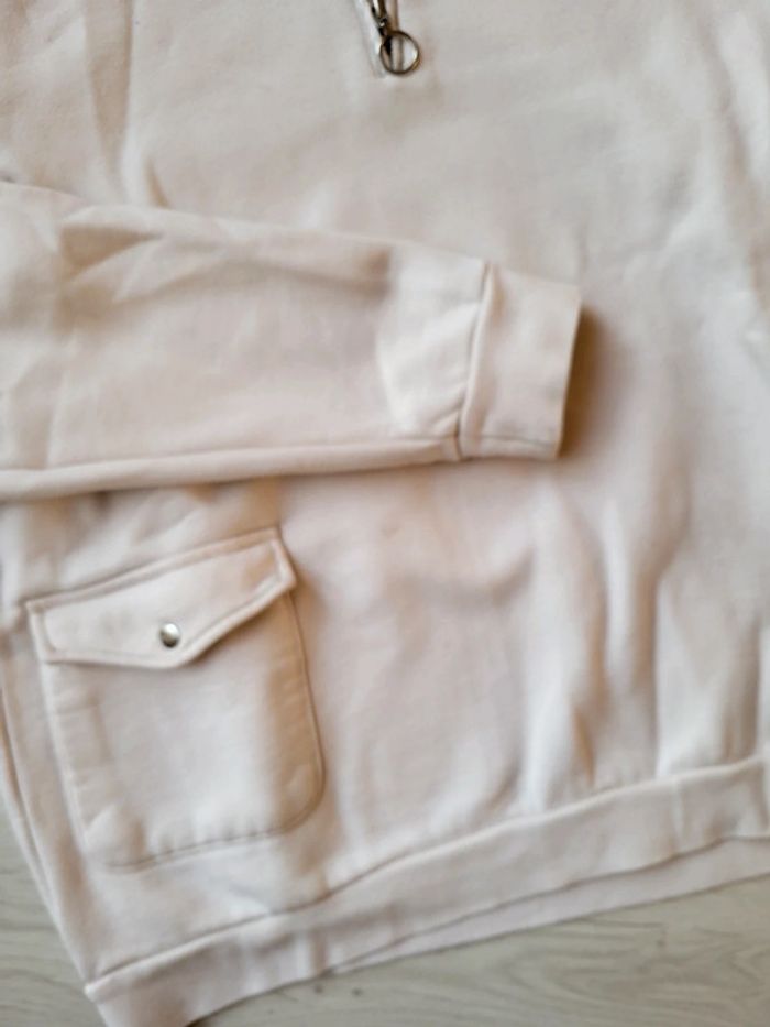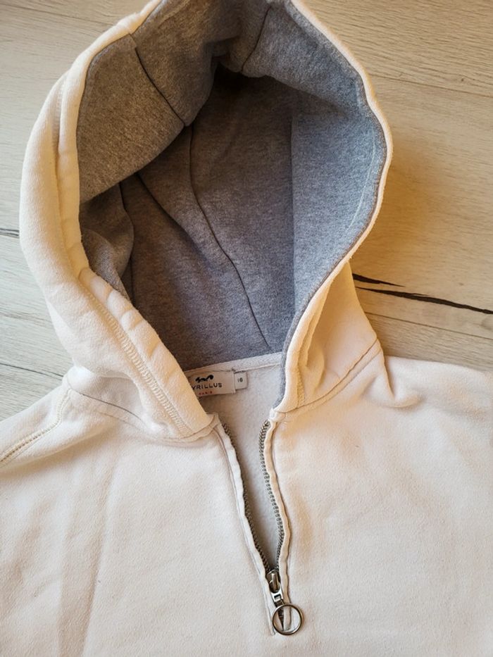 Sweat à capuche cyrillus 16ans. Bien porté. Une mini tâche à signaler (cf.photo) Blanc cassé. #16anstristan #pull #sweat #16ans #cyrillus