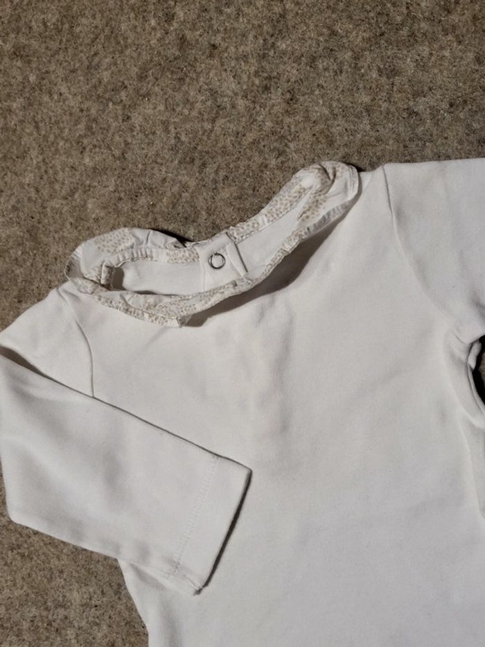 Body blanc 12 mois avec col jacadi neuf. Pressions pour enfilage facile. #12moistatiana #col #jacadi #body #12mois