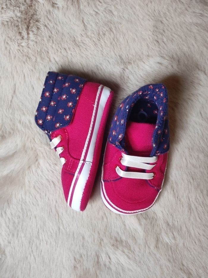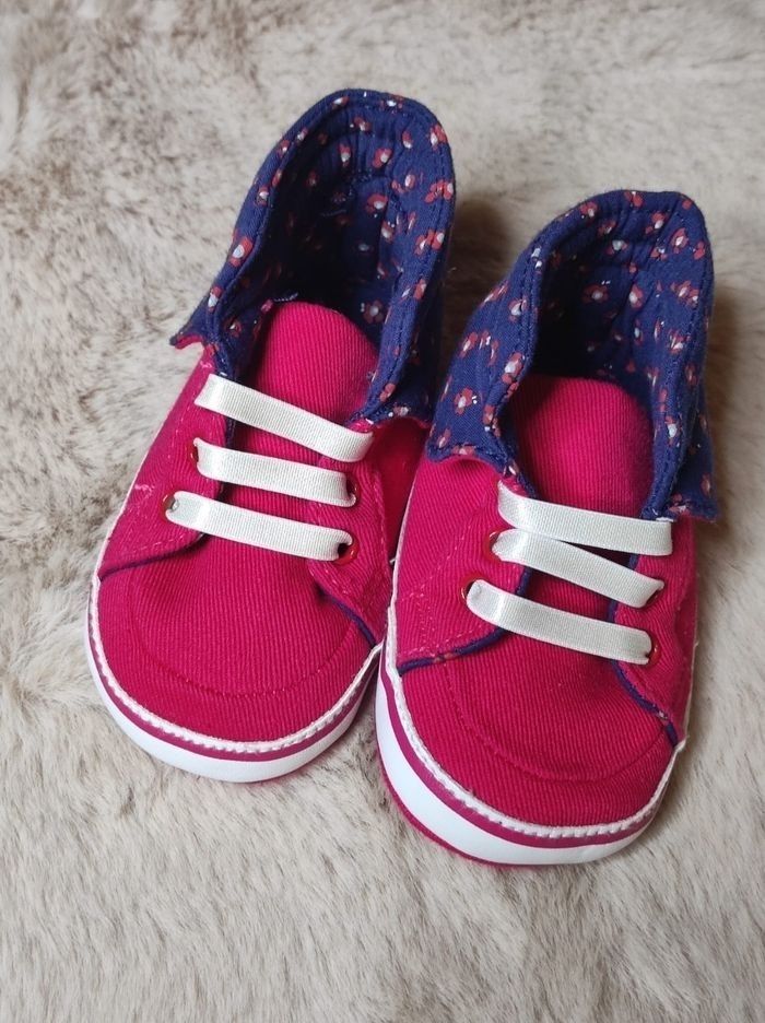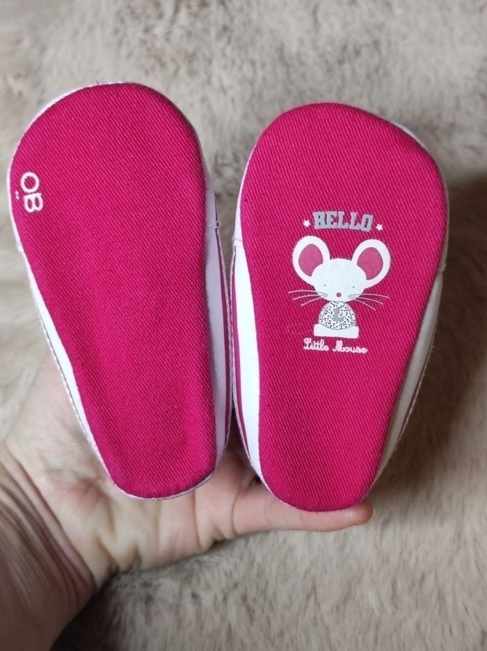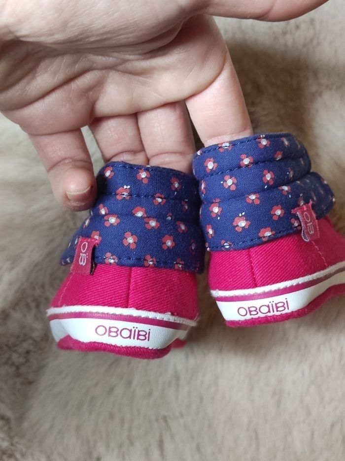 Chaussons pour bébé fille de chez obaibi Taille 16 ( marquage absent) convient pour du 3 mois si je dis pas de bêtise.