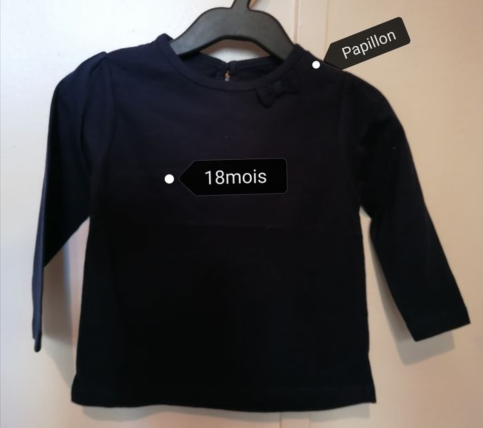 T. Shirts Manche longue Bébé filles 18mois Couleur bleu marine Un bouton derrière Neuf sans étiquette 4€