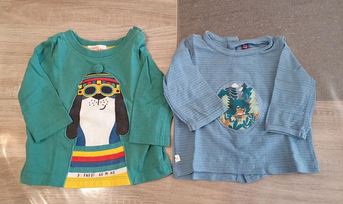 Lot 2 tee-shirt manches longues. Très bon état. Taille 3 mois. Marque sergent major et DPAM