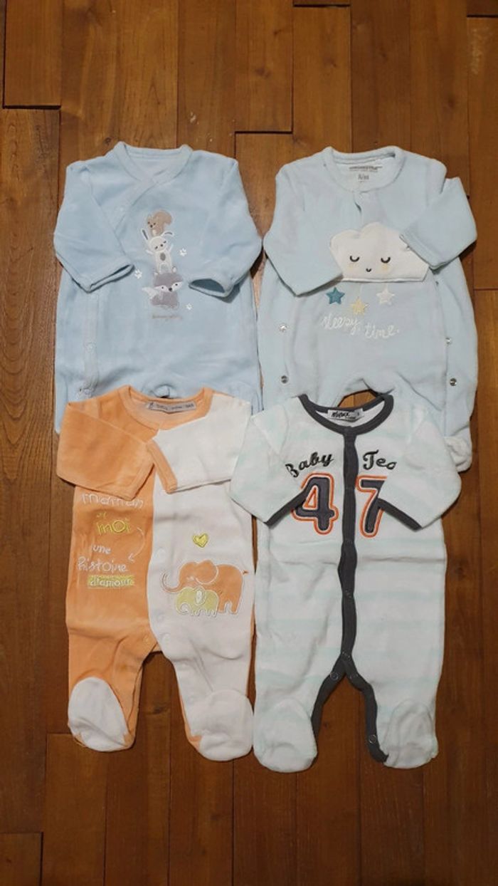 Lot 4 pyjamas en taille 0 mois. Très bon état. Diverses marques.