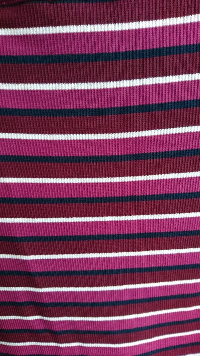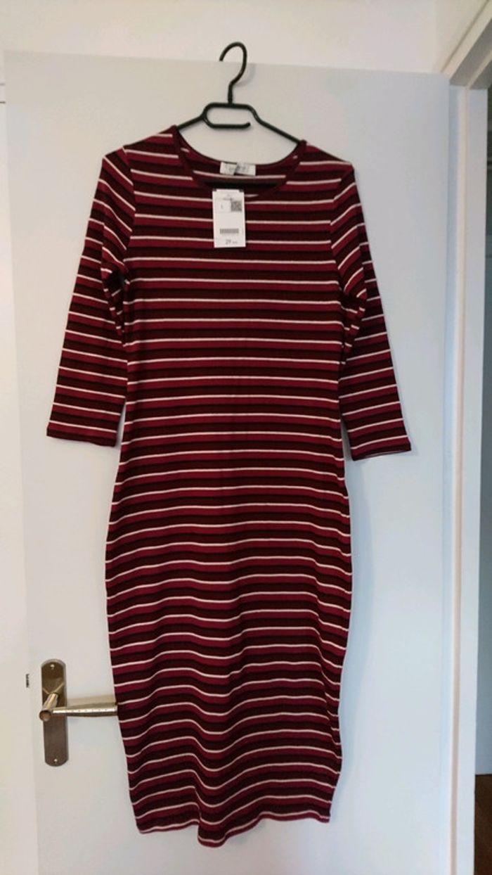 Robe promod neuve avec étiquette. Taille L. Couleur violette à rayures. Robe près du corps. La longueur arrive en dessous des genoux. Manches 3/4