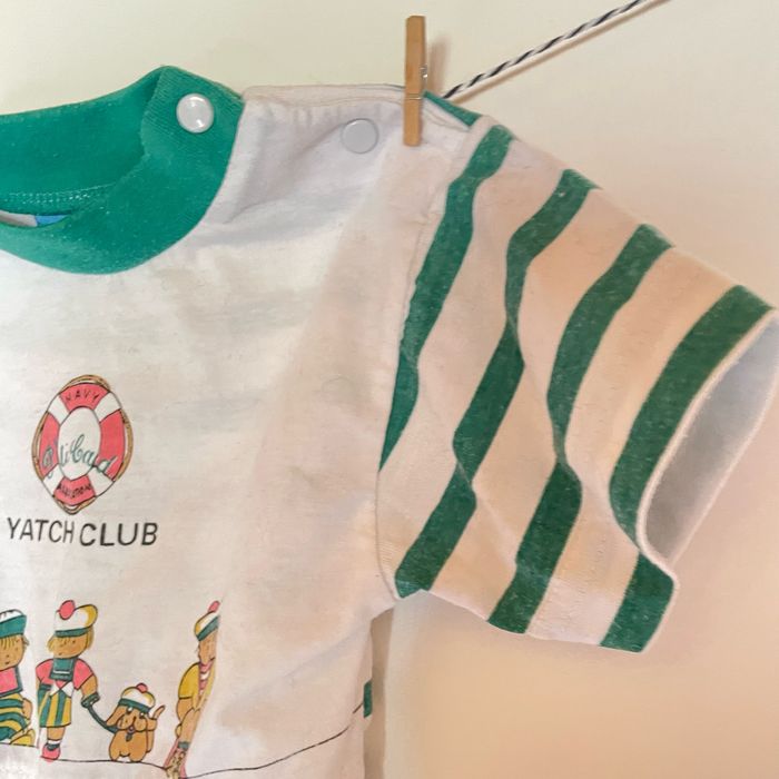 Marinière P’ti Caïd rayée verte et blanche 3 mois Super état Polyester et coton #vintage #marinière #babyclothes #babyclothing