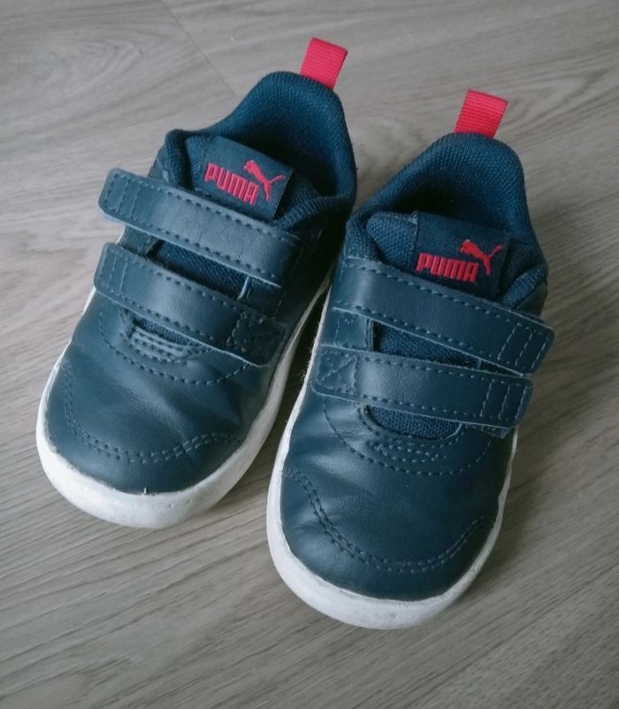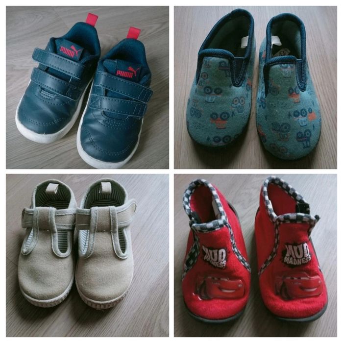 Basket PUMA: bébé Taille 21 Ont été porté mais encore en très bon état Petites chaussures à scratchs: Portés quelques fois en intérieur seulement Taille 21 Chaussons CARS: à fermeture éclaire Taille 21 Petits chaussons tracteurs: jamais portés Taille 21
