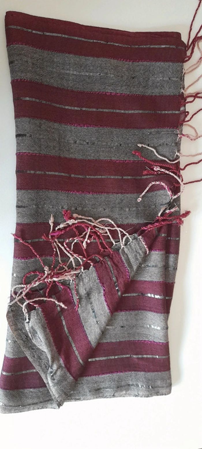 Echarpe coton rayée bordeaux et grise