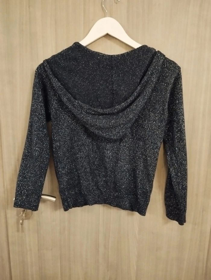 Gilet bleu marine pailletté argenté à capuche Fermeture éclair sur le devant Marque storytelling Taille 10 ans
