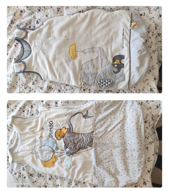 Vends 2 gigoteuses chaudes sauthon et Disney, taille 0-6 mois. Ont servi mais sont encore en bon état pour être réutilisées.
