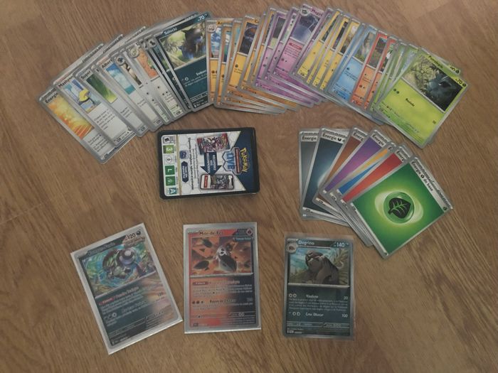 Lot 60 cartes Pokémon Lot de 60 cartes, comprenant: 34 cartes classiques 1 set Energie (8 cartes) 3 cartes brillantes dont 2 rares ! 15 cartes Pokémon Live Pas de double. Carte brillantes sous protection. Carte en état neuf ! Envoi rapide et soigné