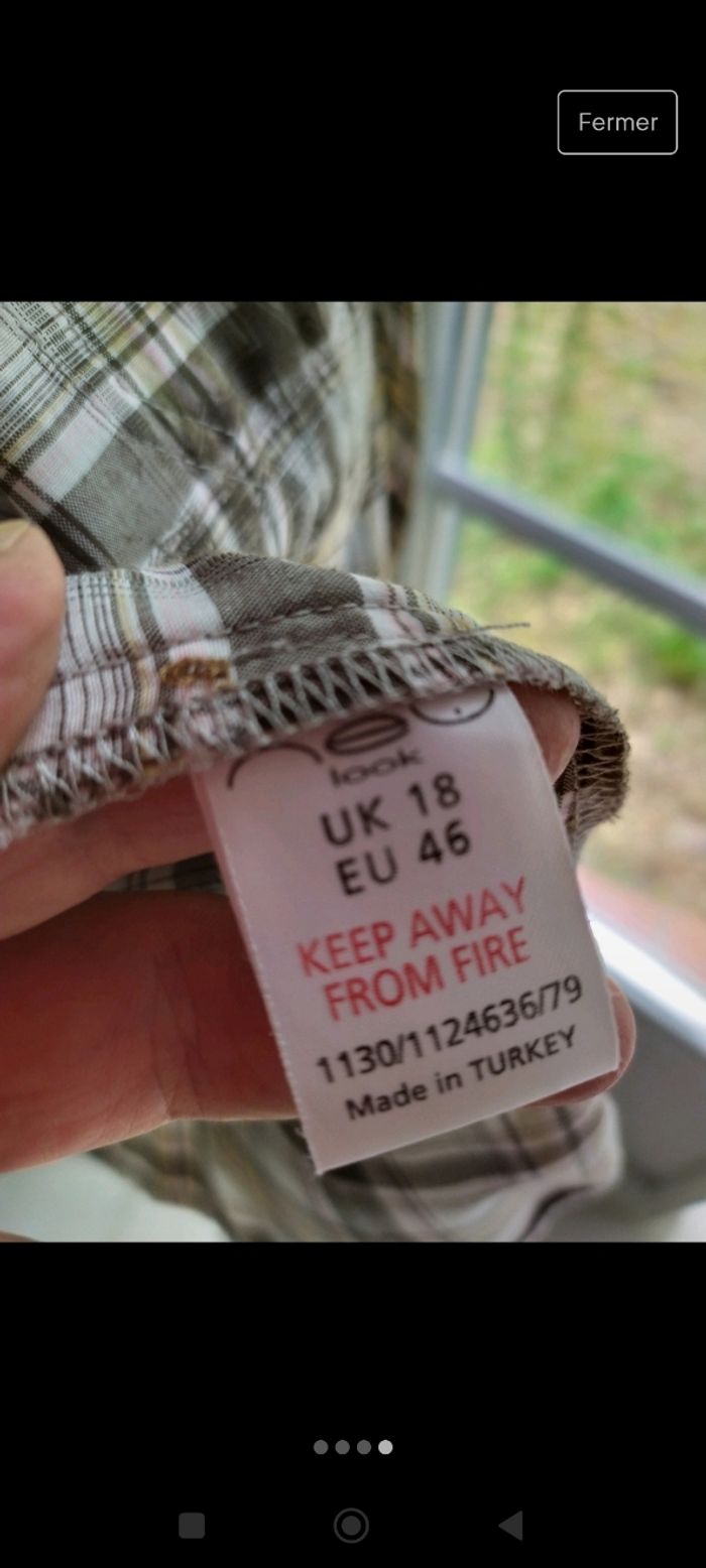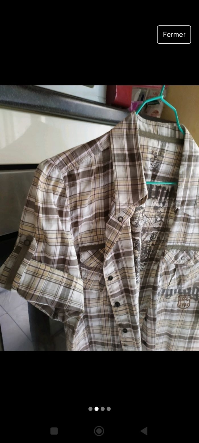 Chemise à carreaux... Neuve jamais portée.. Taille 46... Manche 3/4 qui se rabat.. Tour poitrine... 120cm Largeur épaules... 42cm Hauteur dos... 65 cm