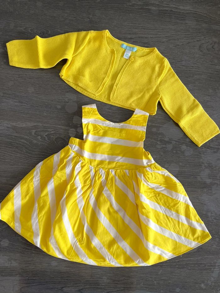 Très jolie robe été bébé réversible obaibi jaune, 6 mois Avec son petit gilet de même marque Très jolie pour soirée , fête, cérémonie En parfait état
