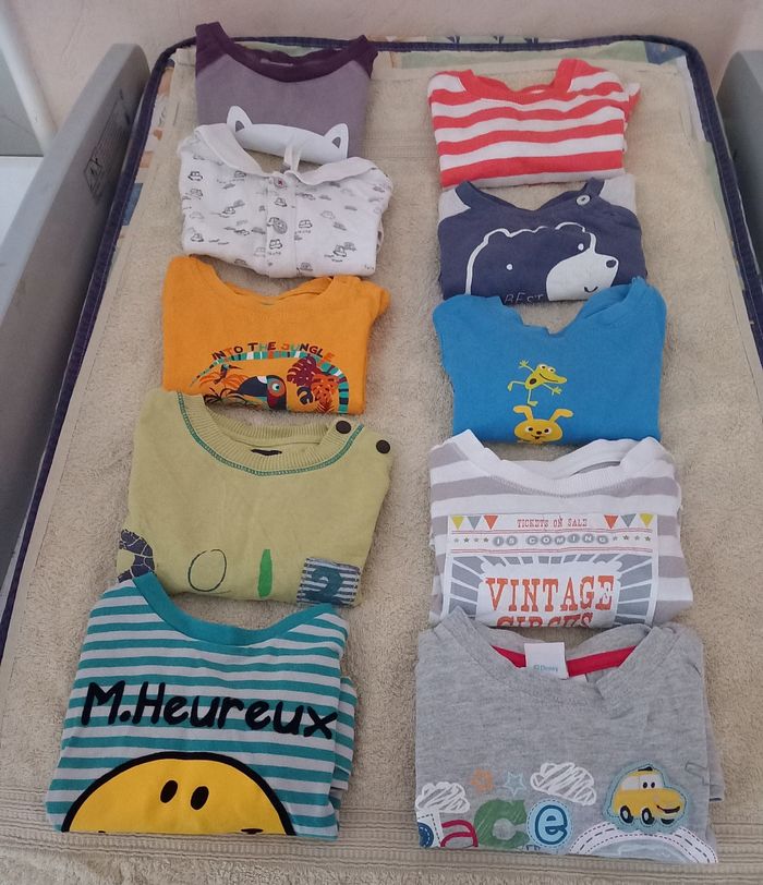 Lot de plusieurs haut garçon très bonne état Dont 10 ml, 3 mc et 2 chemise Plusieurs marques dont kiabi,Disney, Orquestra, Okaïdi