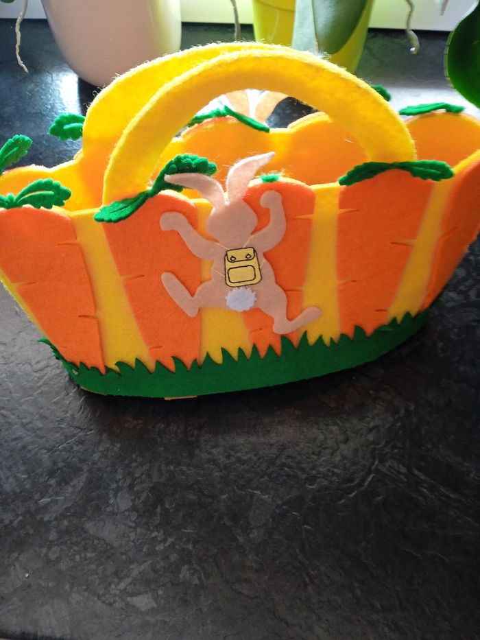Joli panier pour mettre les chocolats de Pâques 25 cm de long et 12 cm de profondeur. Vendu avec 10 surprises. Motif du palmier lapin quelques feuilles de carottes un peu abîmé mais reste en très bon état. #joueteducatifnade3033 #jouetenfantnade3033 #décorationnade3033 #accessoirefillenade3033 #décorationPâquesnade3033