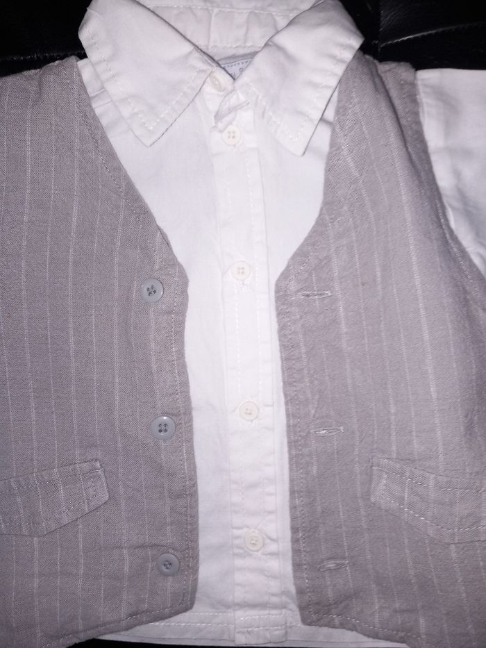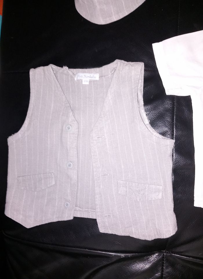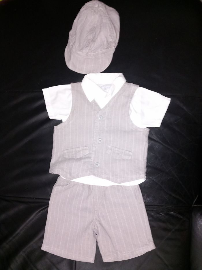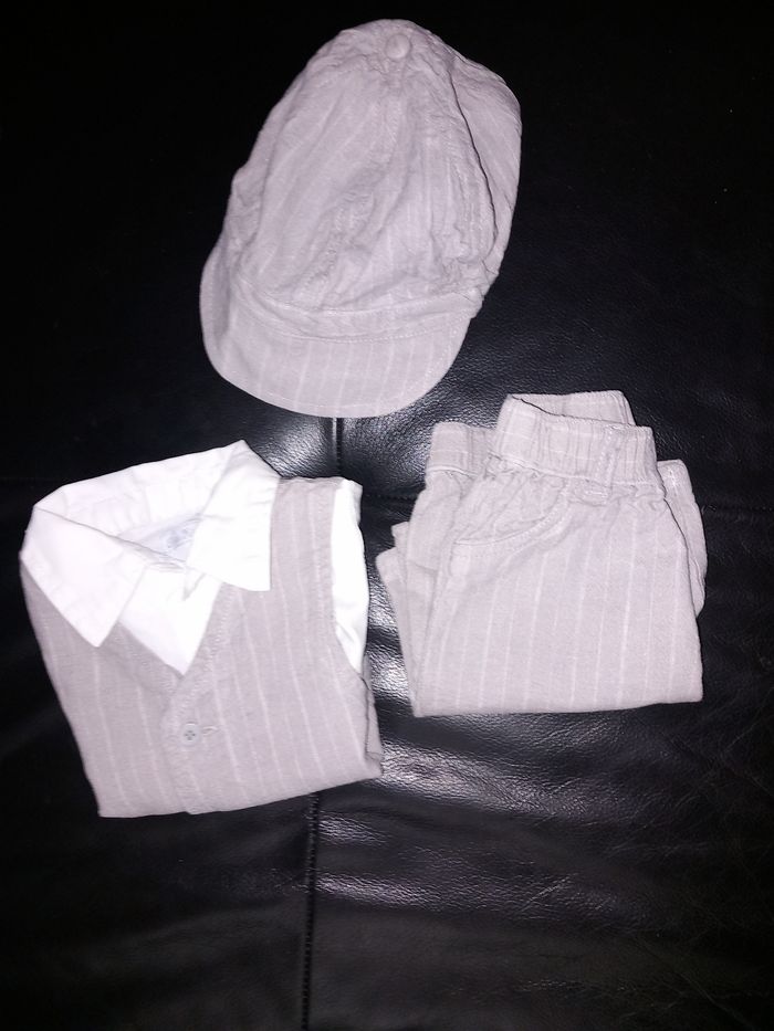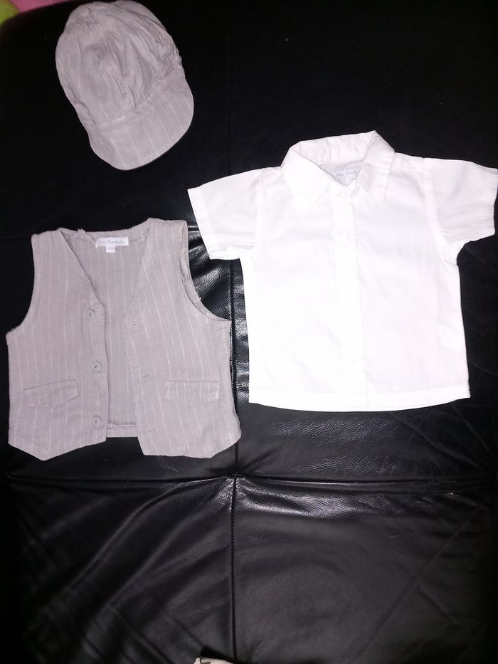 Ensemble 4 pieces garçon 12 mois été TBE. Très joli pas de tâches ni de trous je viens de le repasser 🙂 comprend : Une casquette Une chemise blanche Un gilet Un bermuda