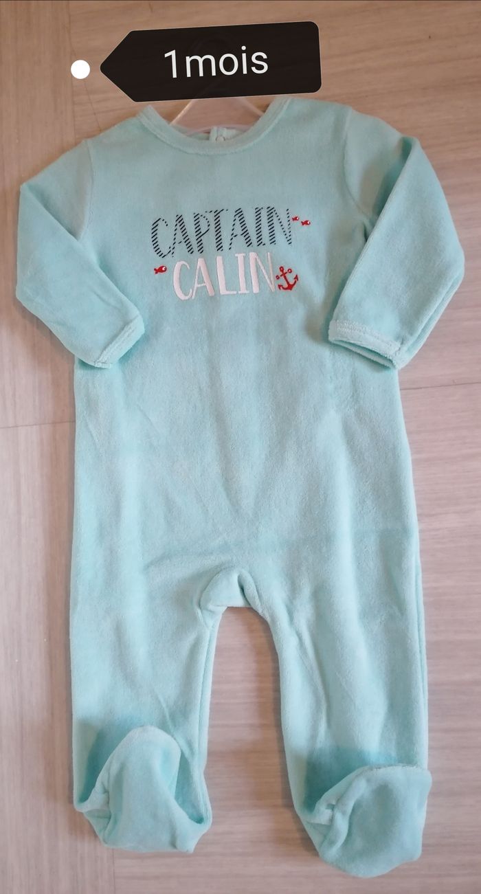 Grenouillère bébé garçon Couleur bleu clair Age 1mois Fermeture derrière Matière tissus 75% coton. 25% polyester. Neuf sans étiquette 6€