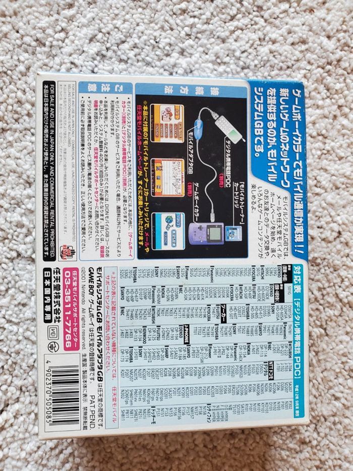 Il est en super état, j ai mis une photo de la cartouche pour montrer qu elle fonctionne sur un gameboy color (pas à vendre). C est une belle pièce rare pour collectionneur. Le numéro de serie de l appareil et de la notice sont les meme. Import jap. Servait à jouer en réseau via des mobiles japonais à l époque. Pour plus de renseignement me demander