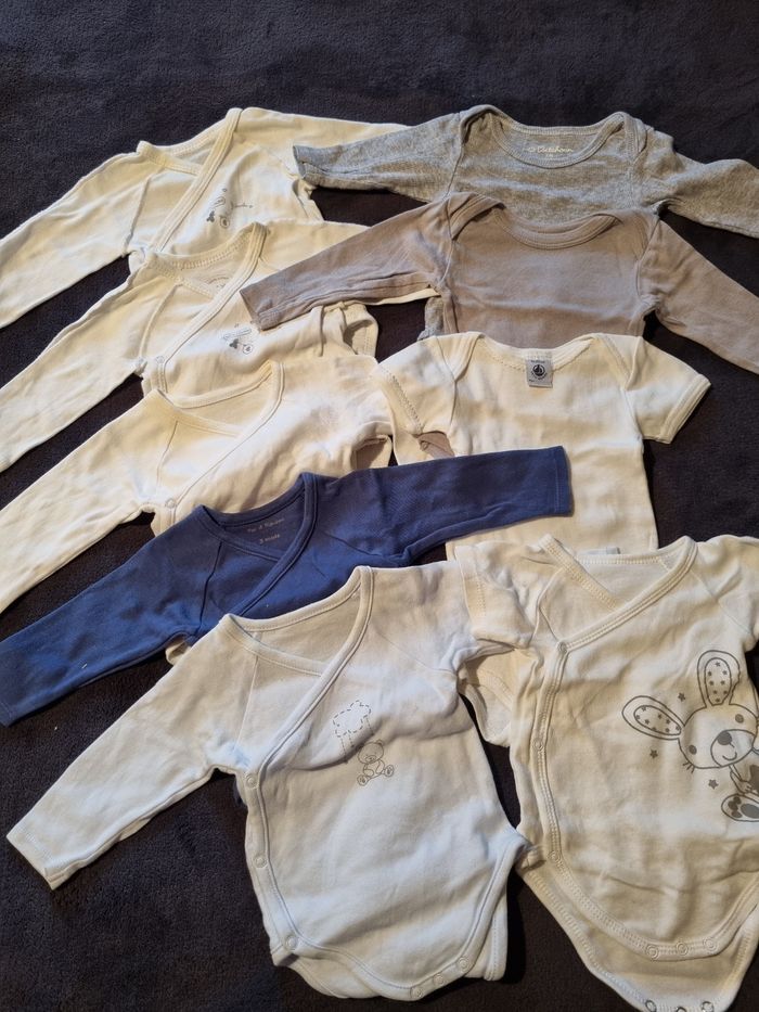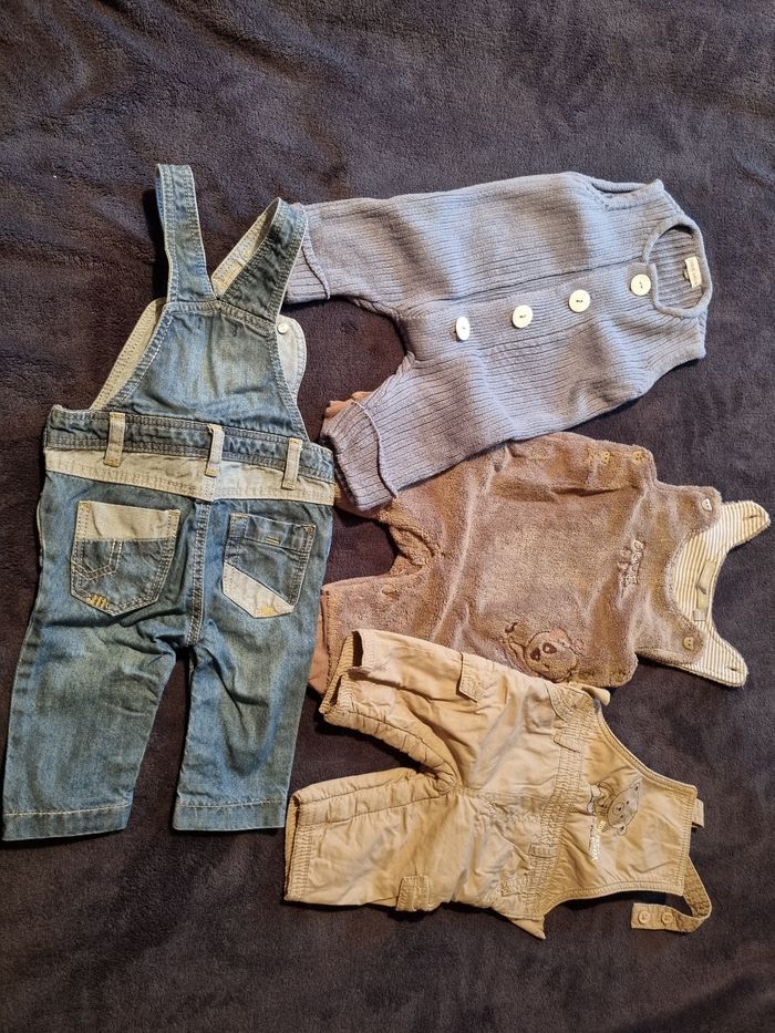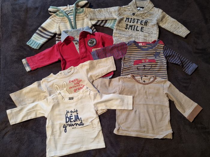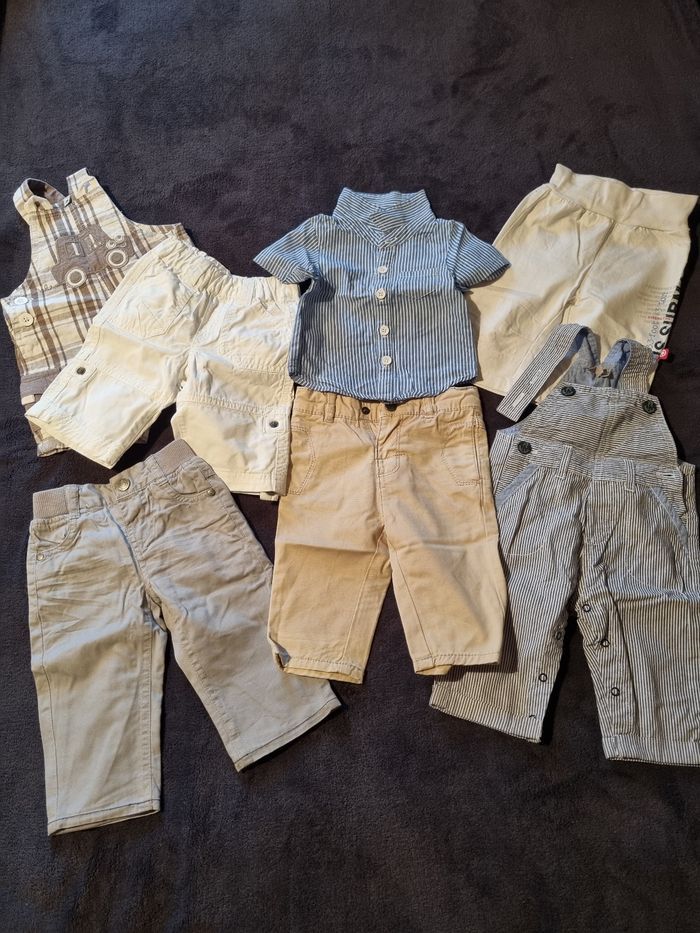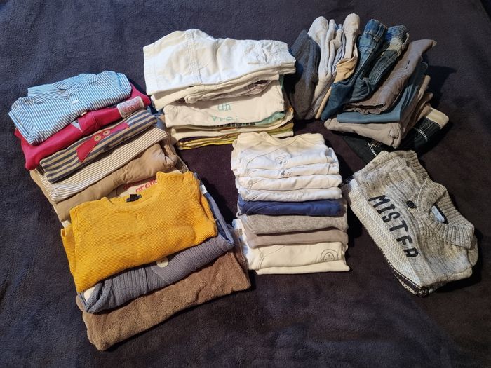 Composé de : - 7 bodys manches longues - 8 pantalons hiver - 4 salopettes hiver - 5 tee-shirt manches longues - 2 pull - 1 gilet - 2 bodys manches courtes - 3 pantalons été - 2 salopettes été - 1 short - 1 chemisette - 9 tee-shirt manches courtes Possibilité de réaliser plusieurs ensembles Diverses marques Tao, dpam, petit bateau, kitchoun, pat et ripaton, confetti, gemo, kiabi, in extenso, mes petits cailloux, Adidas, les bébés sont comme ça.... etc