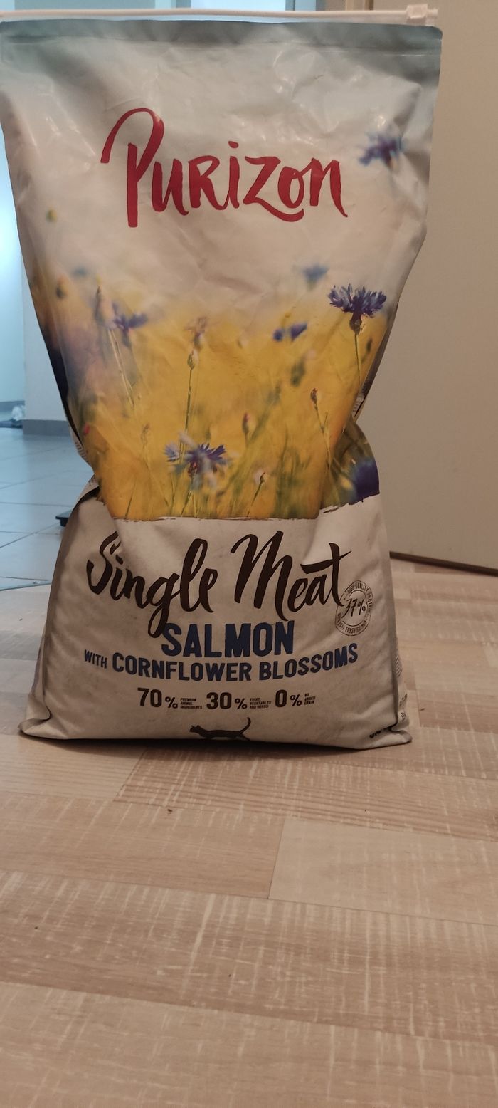 Bonjour, Je vends ce paquet de croquettes Purizon manque une poignée mon chat ne les supporte pas
