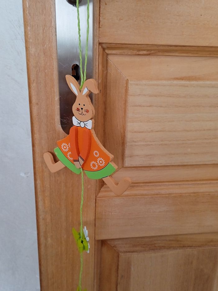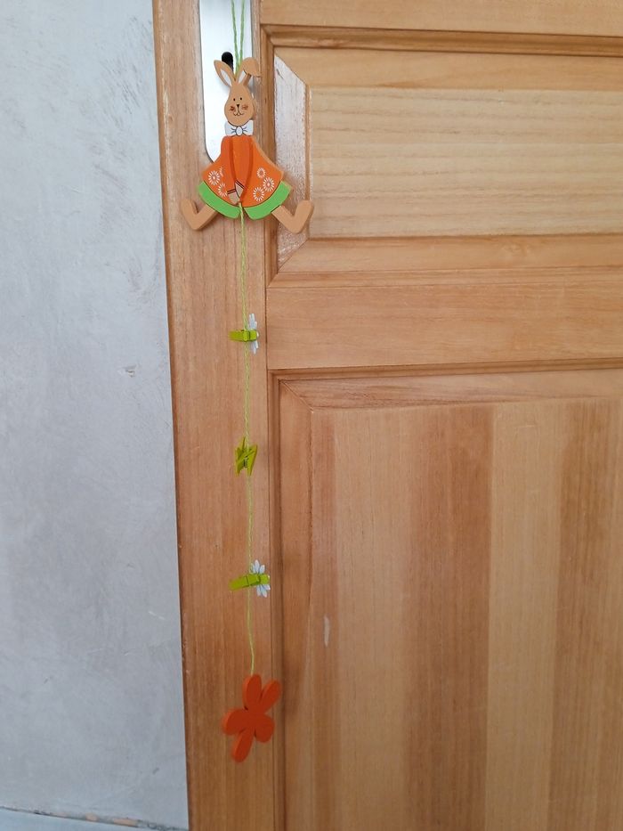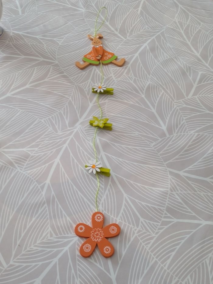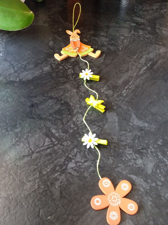 Suspension de Pâques. Personnage lapin avec des pinces en bois motif fleur. #joueteducatifnade3033 #jouetenfantnade3033 #décorationnade3033 #accessoirefillenade3033 #décorationPâquesnade3033 #bazarnade3033